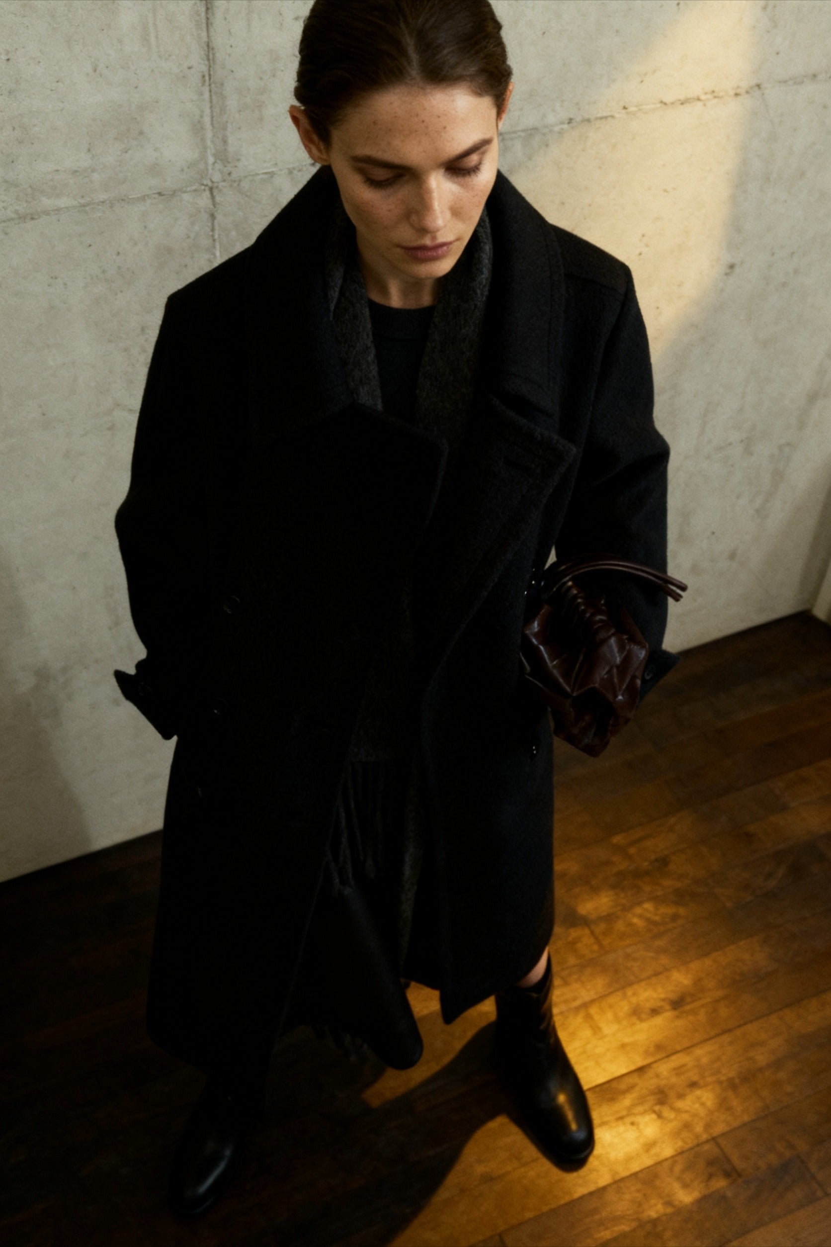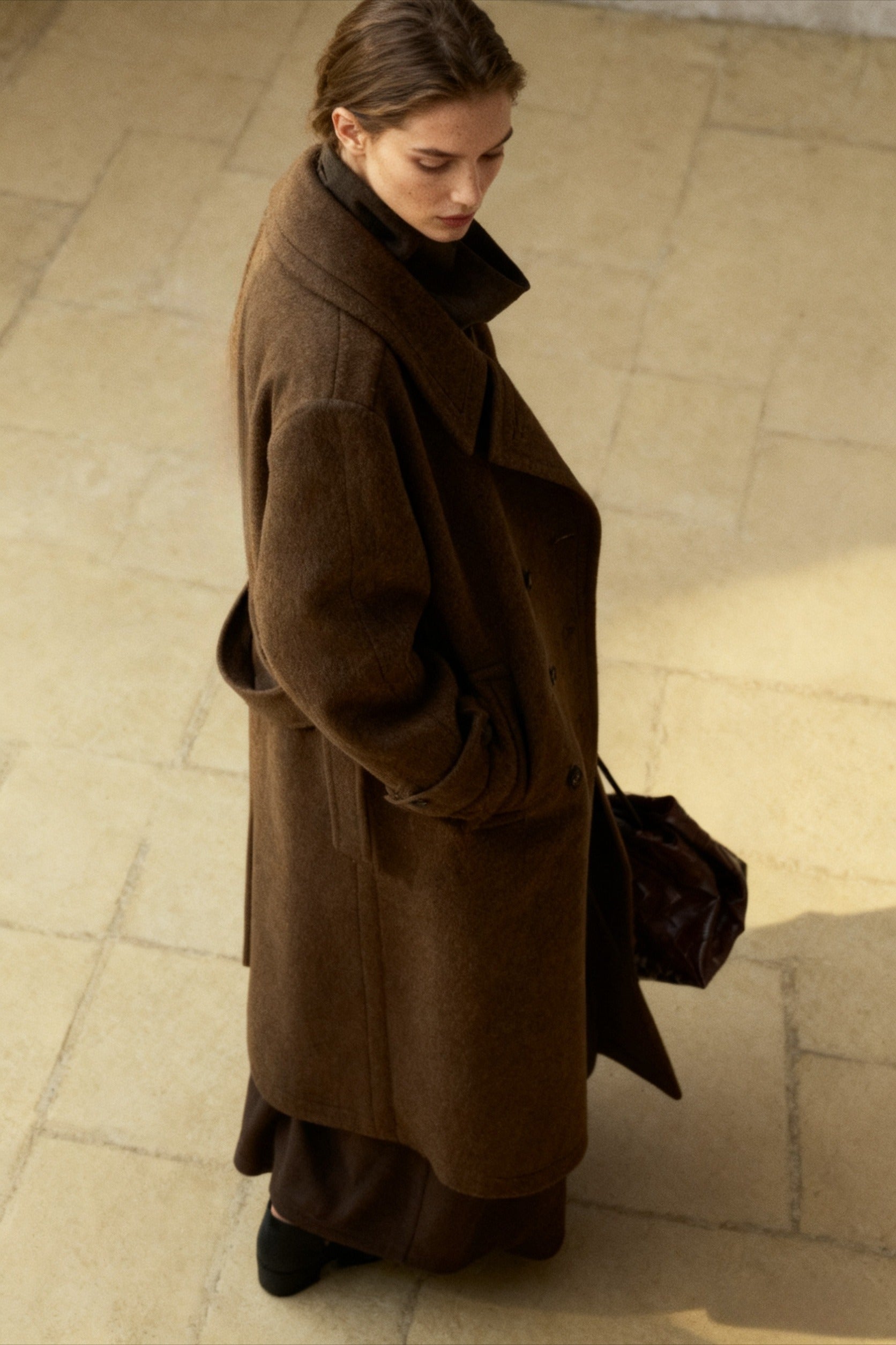 Abrigo de lana 100%, corte holgado, cuello con solapa | 3 colores