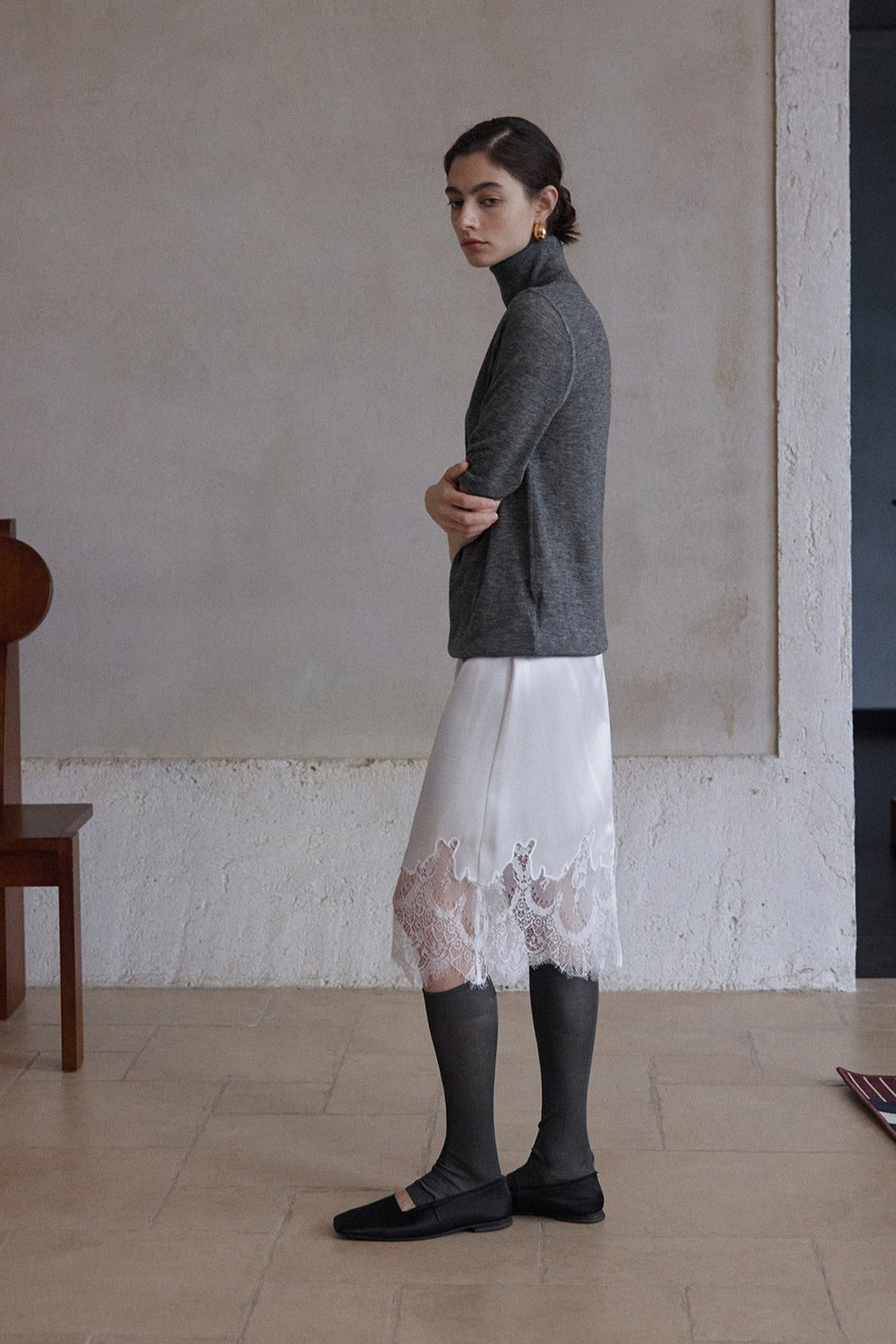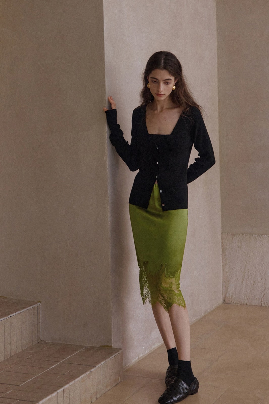 Acetate elegant lace embroidery edge skirt | 4 color