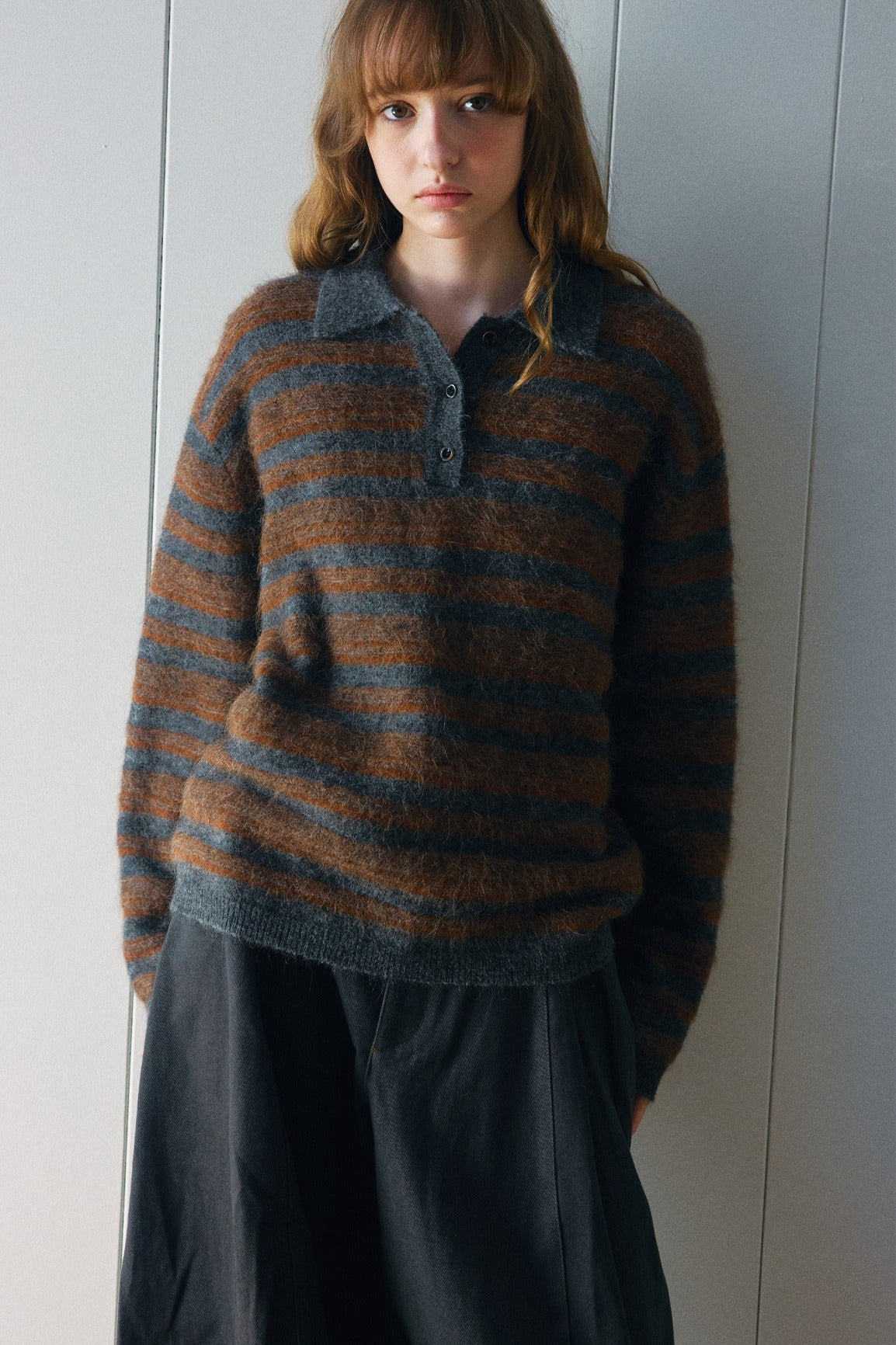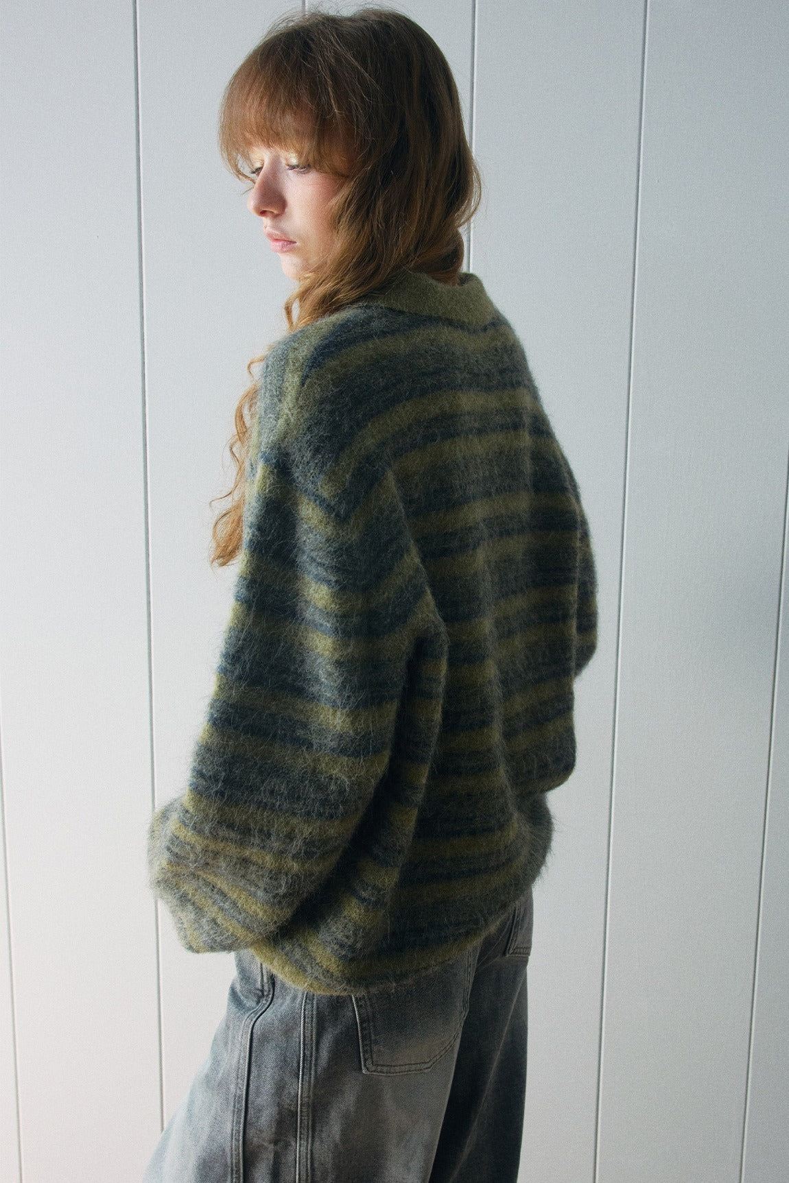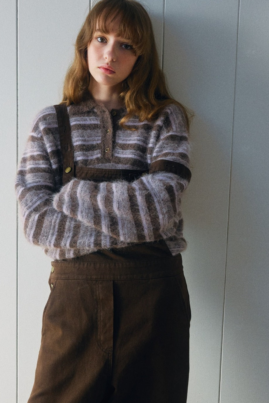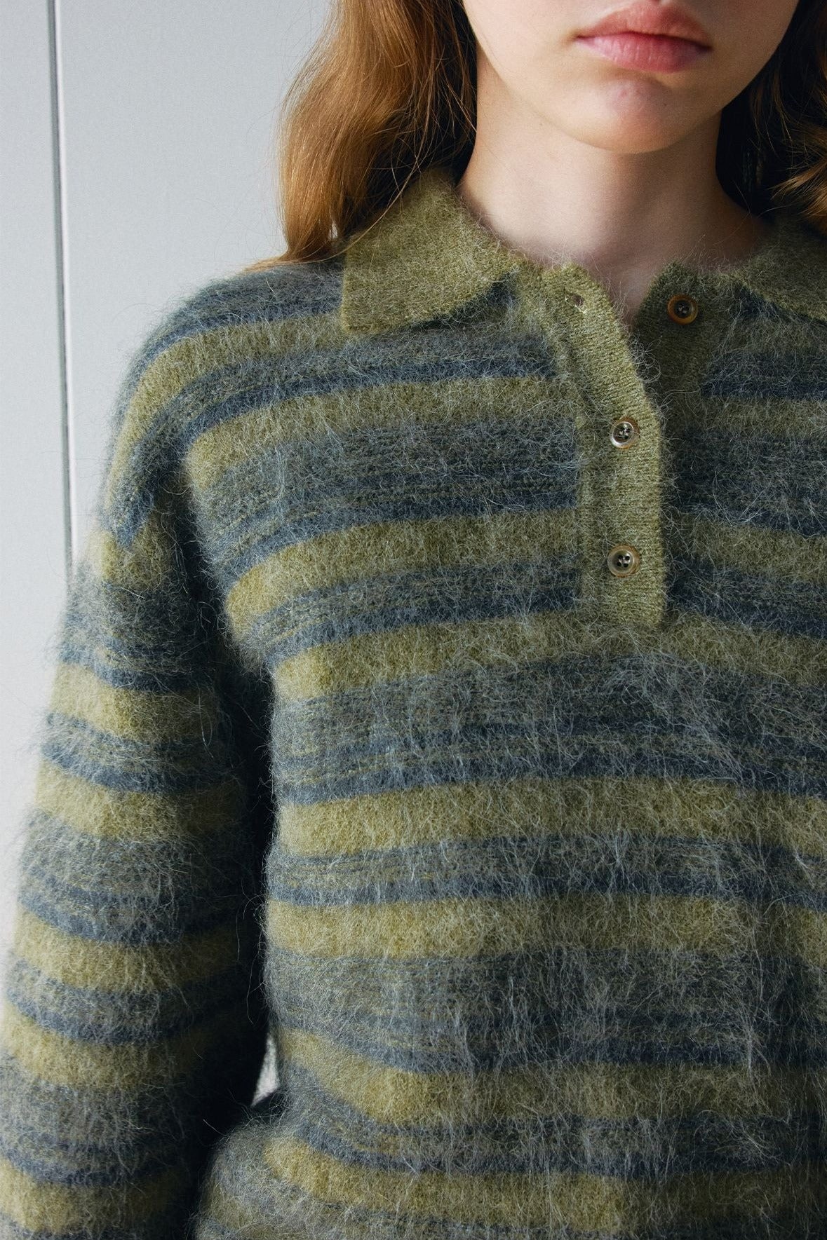 Suéter polo de pelo largo a rayas, mezcla de alpaca | 4 colores