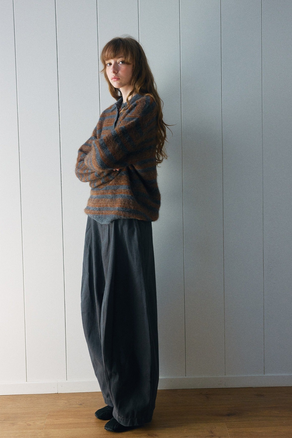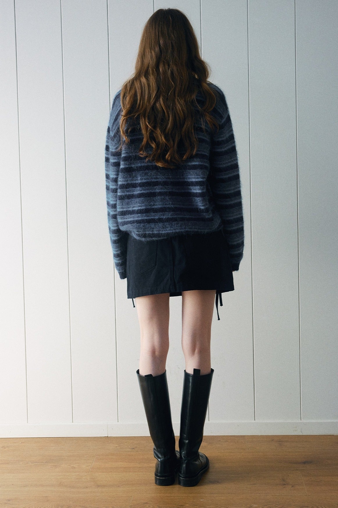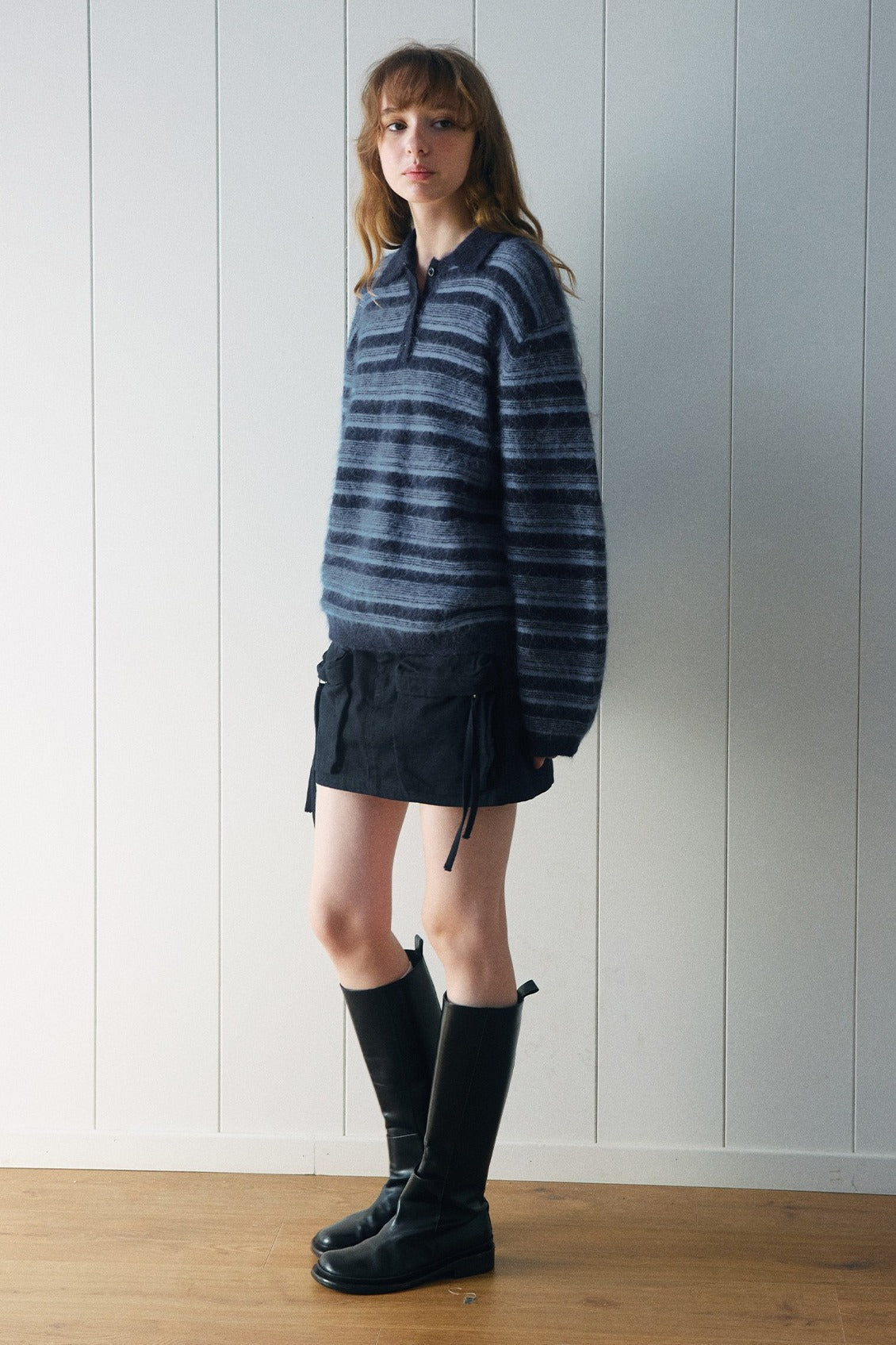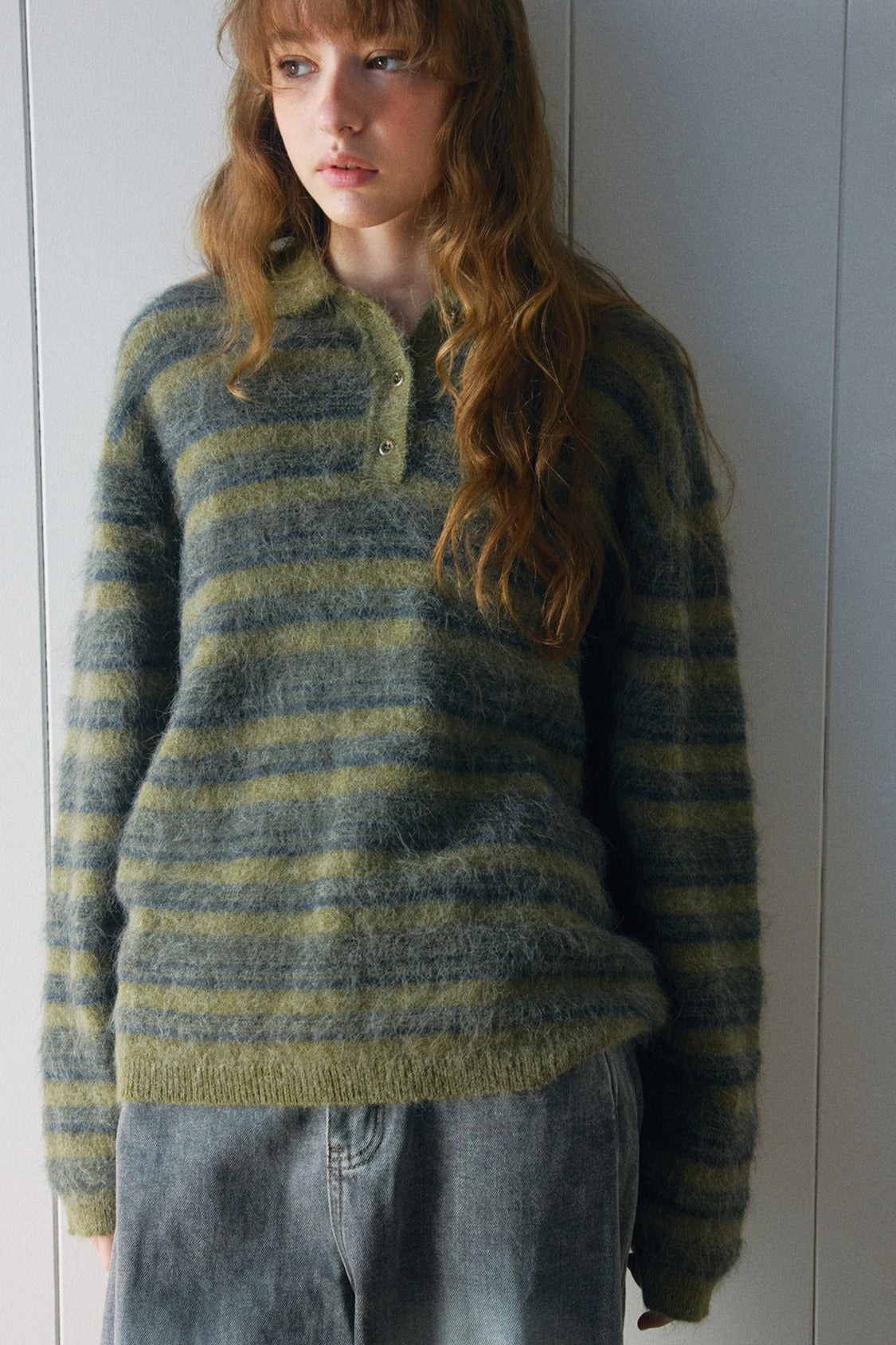 Suéter polo de pelo largo a rayas, mezcla de alpaca | 4 colores