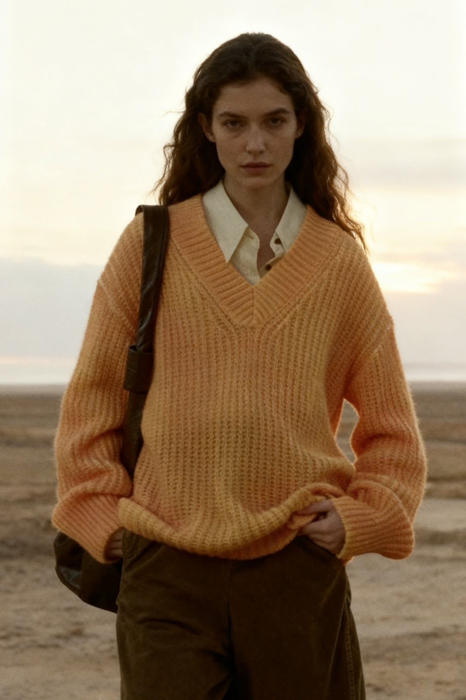 Suéter de punto grueso, corte holgado, cuello en V y drapeado | 4 colores