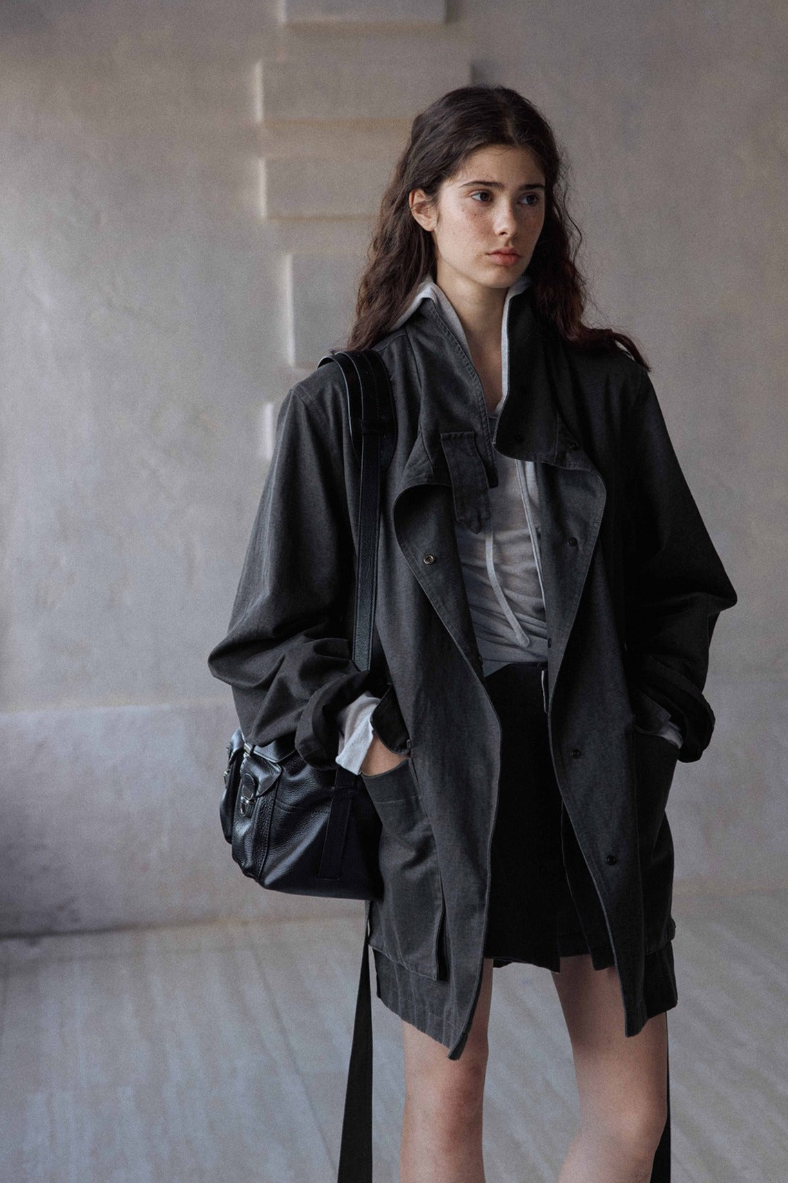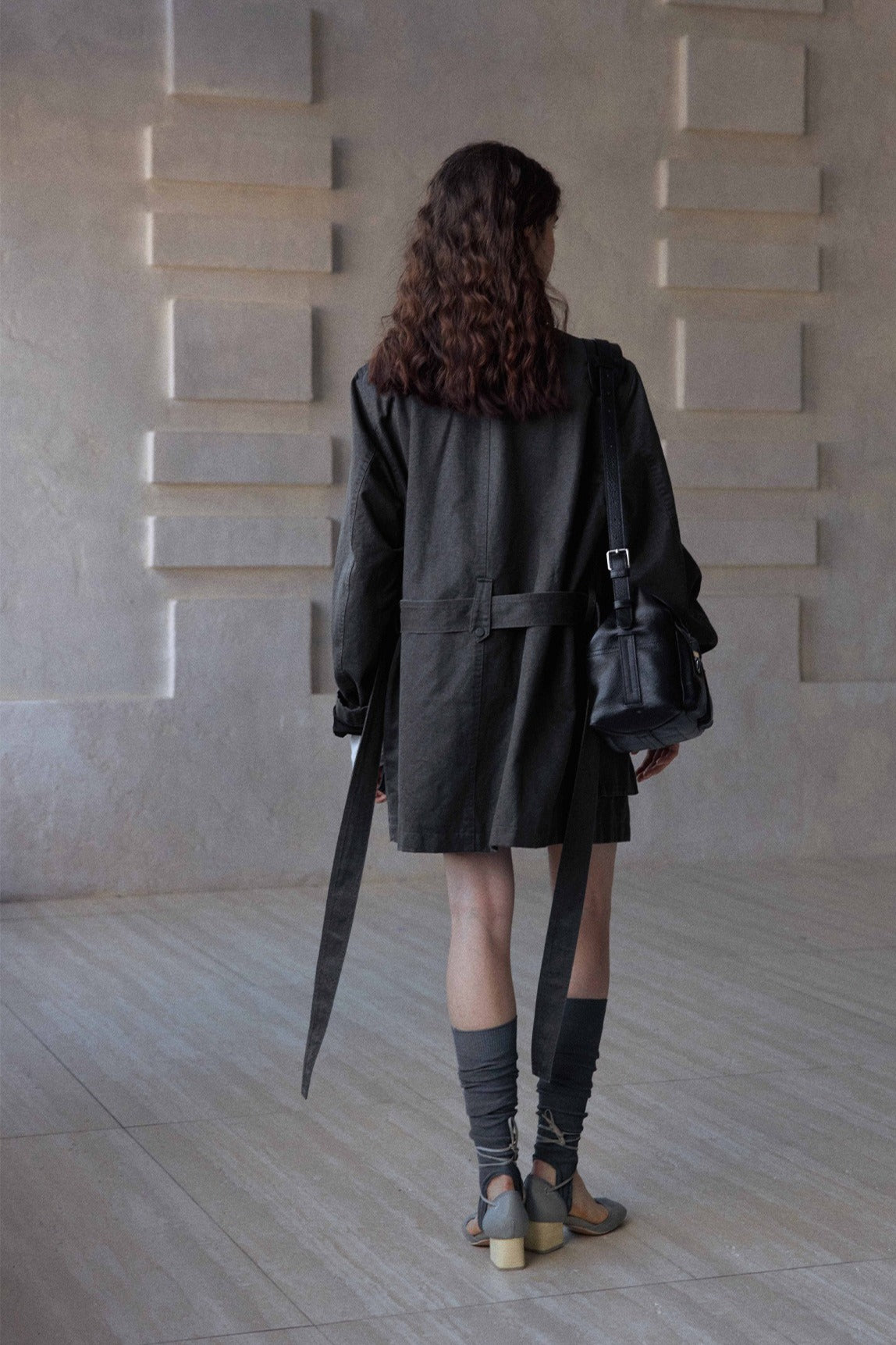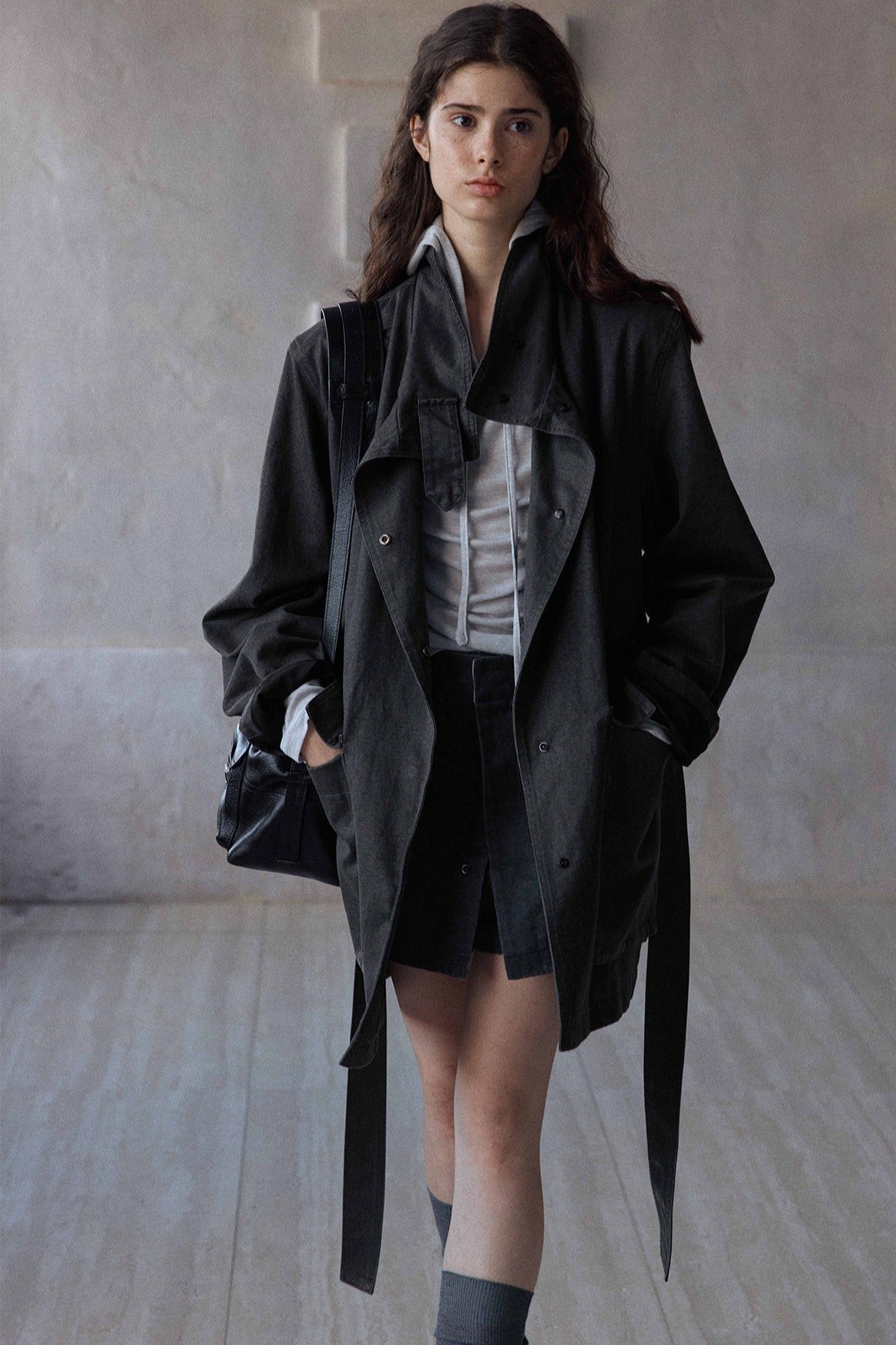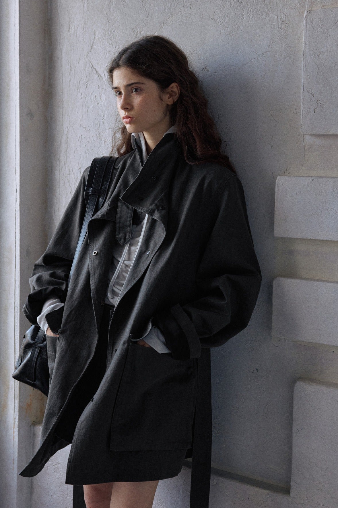 Gabardina con silueta de capullo y textura similar al papel en mezcla de algodón
