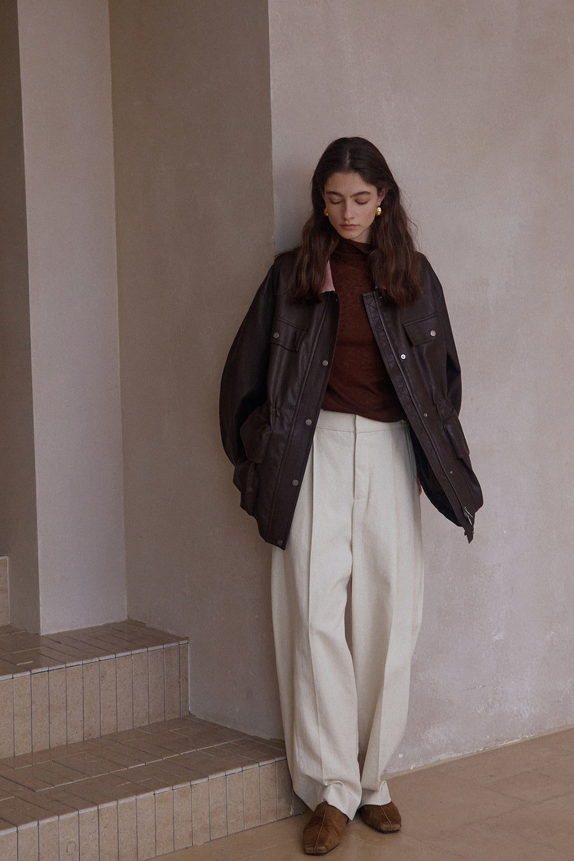 Pantalones holgados de mezcla de algodón con corte curvo | 4 colores