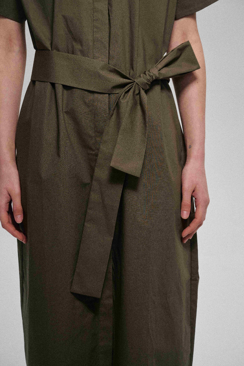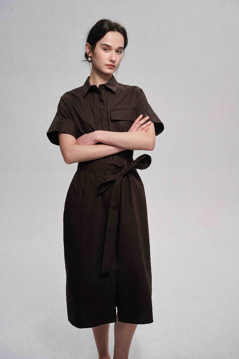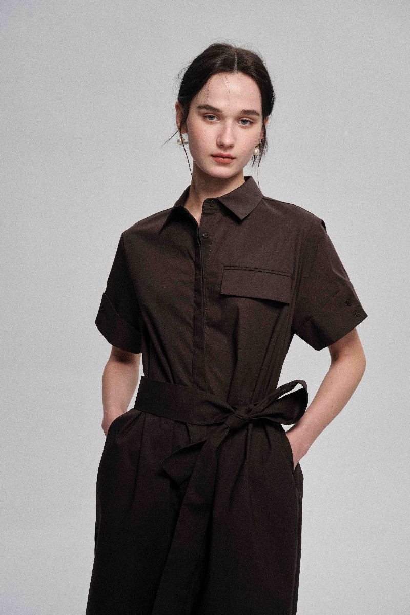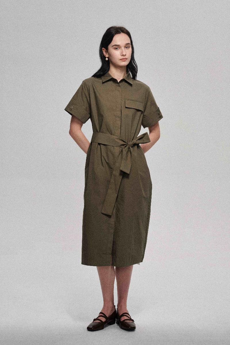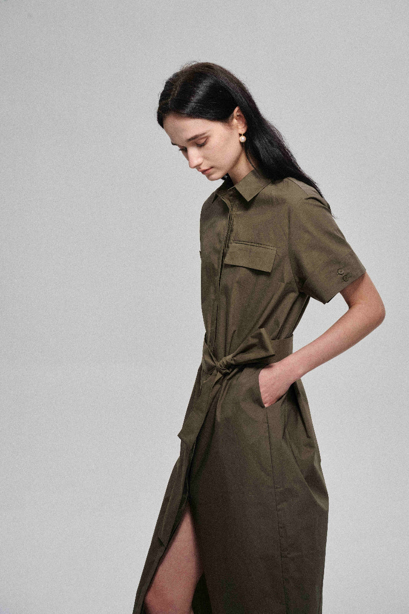 Este vestido camisero de algodón está confeccionado con tela suave y de alta densidad para una sensación de lujo. Su silueta envolvente garantiza un ajuste cómodo que realza el cuerpo. Incluye un cinturón de tela a juego que ciñe la cintura y le da un toque de estilo. Este vestido combina comodidad y elegancia.