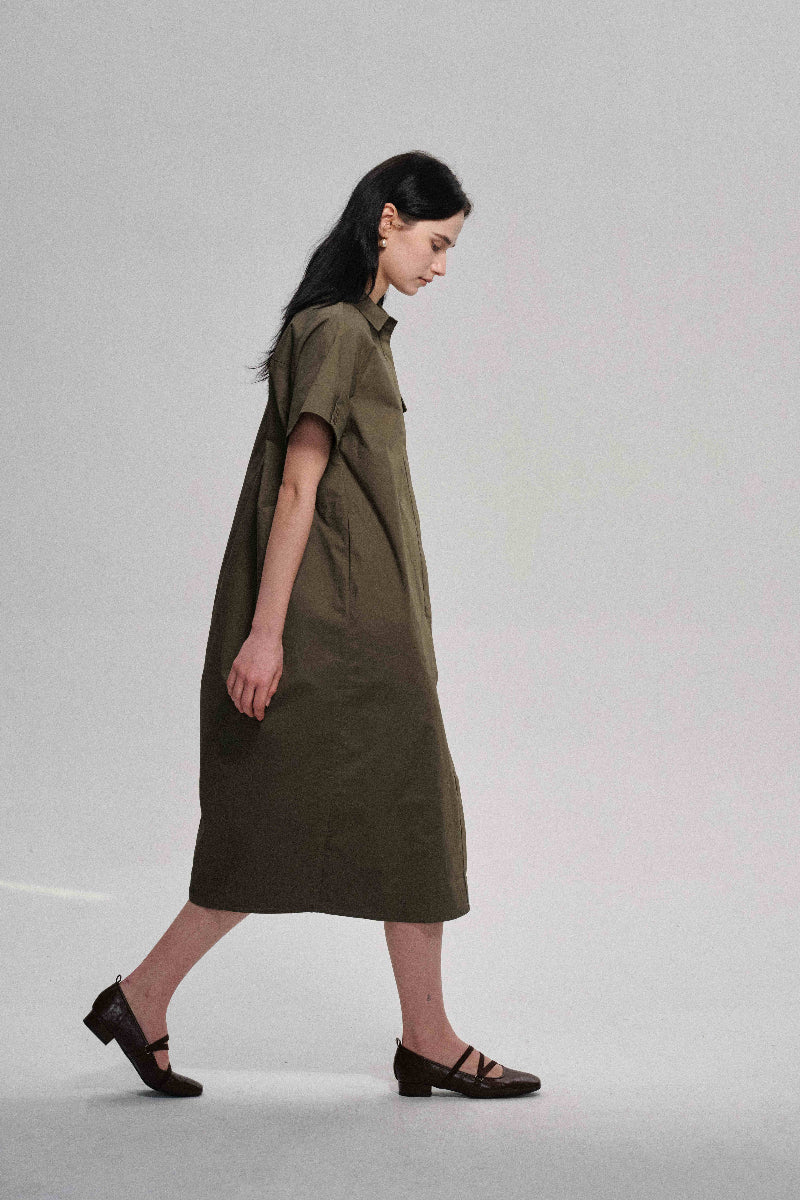 Vestido camisero de algodón con silueta de capullo | 2 colores