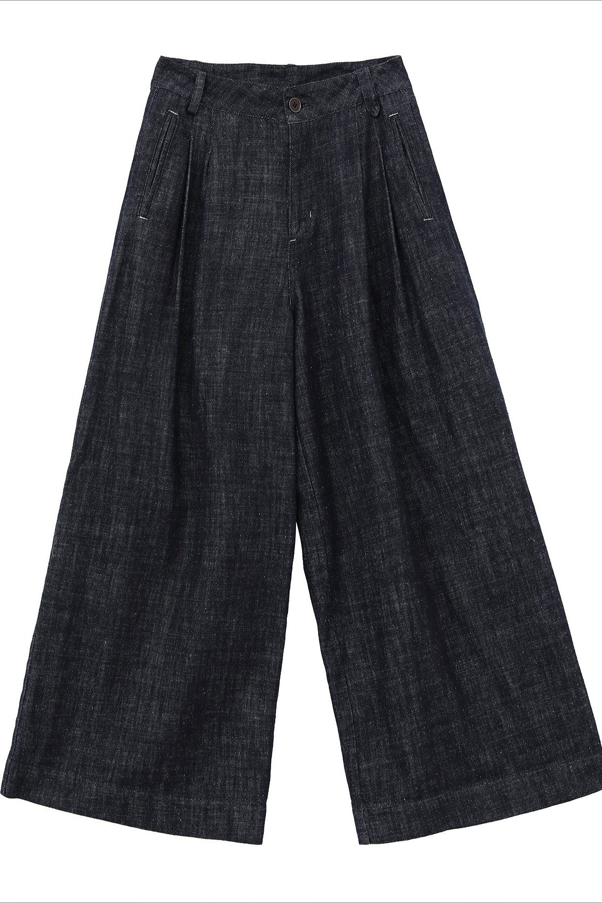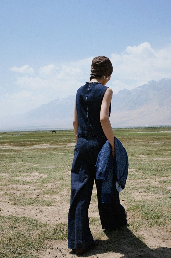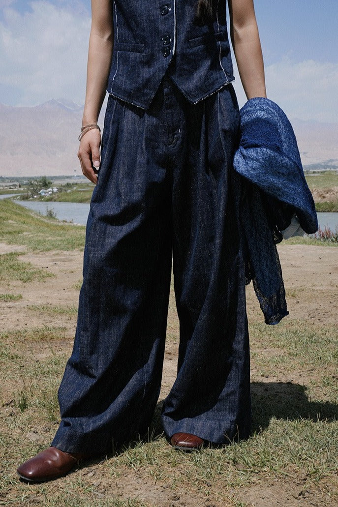 Cotton-linen wide-legs denim indigo