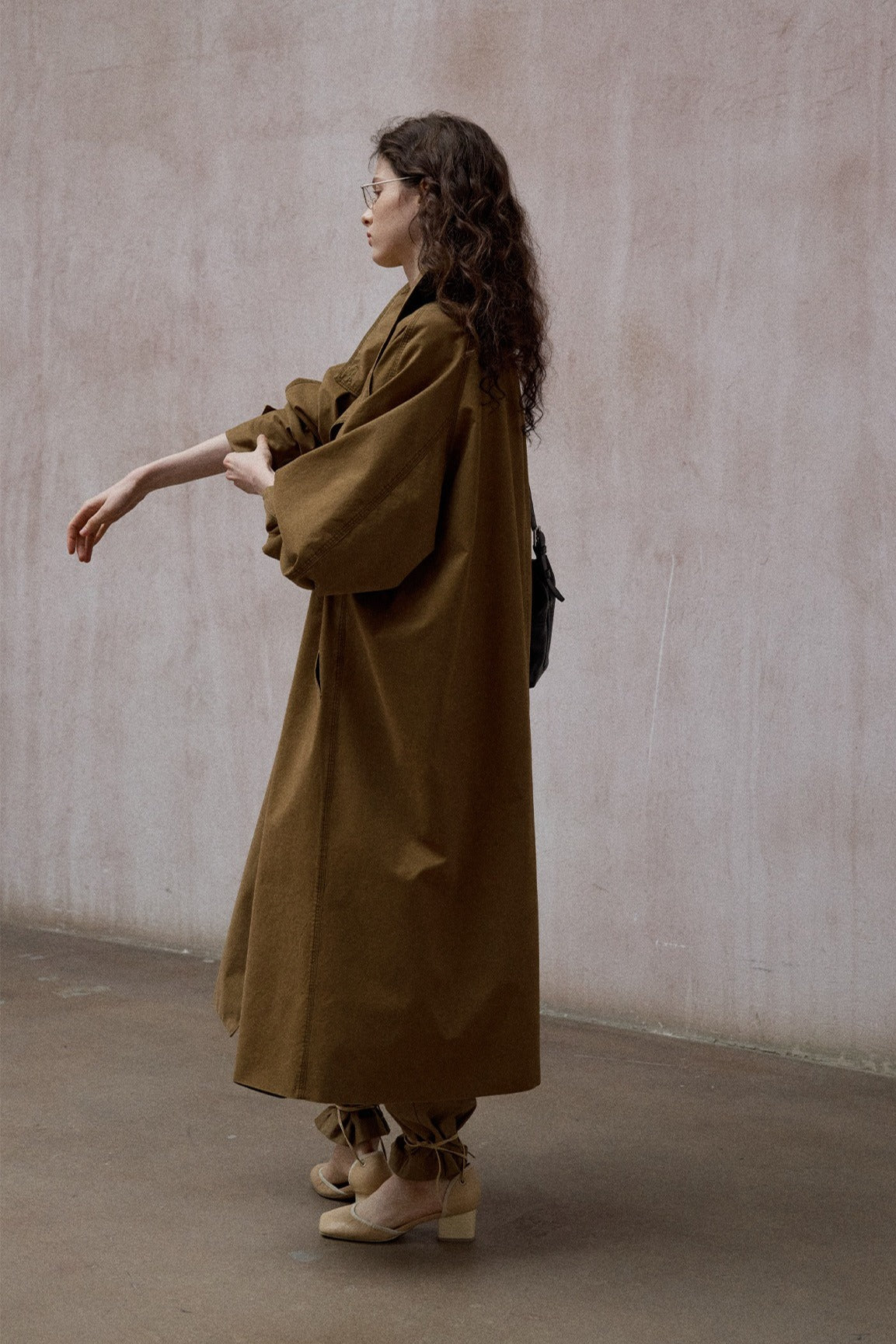 Gabardina de algodón de corte holgado con mangas murciélago | 2 colores