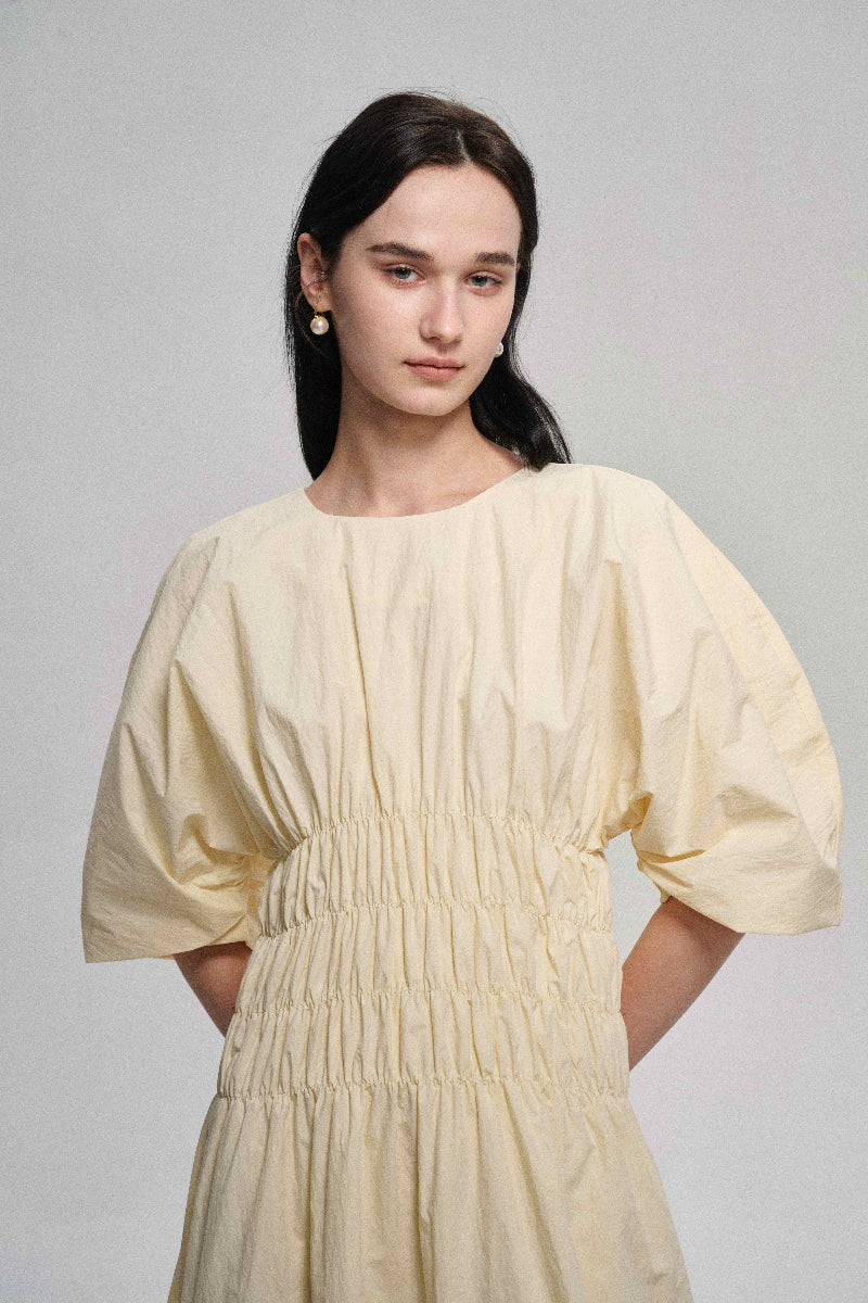 Vestido personalizable con cintura plisada y mangas abullonadas | 2 colores