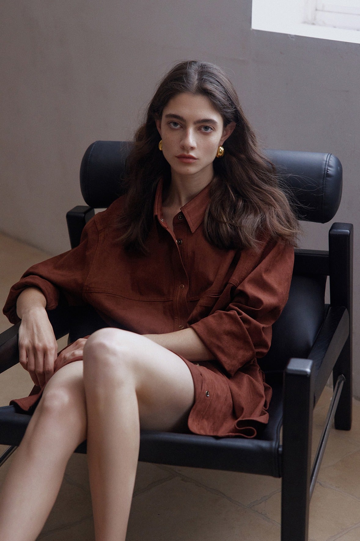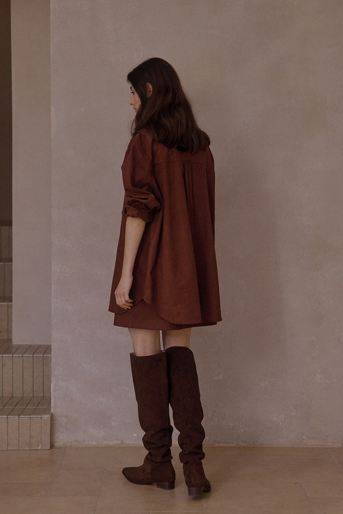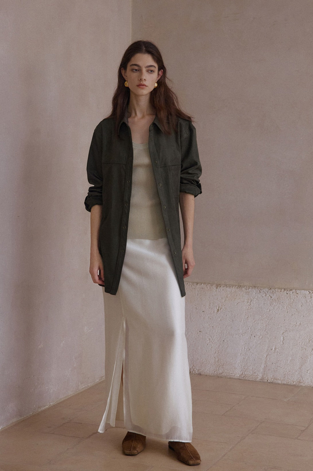 Elastic mid-length suede feel drawstring waist shirt-jacket | 3 color