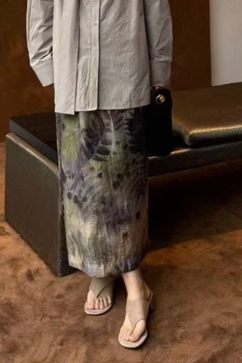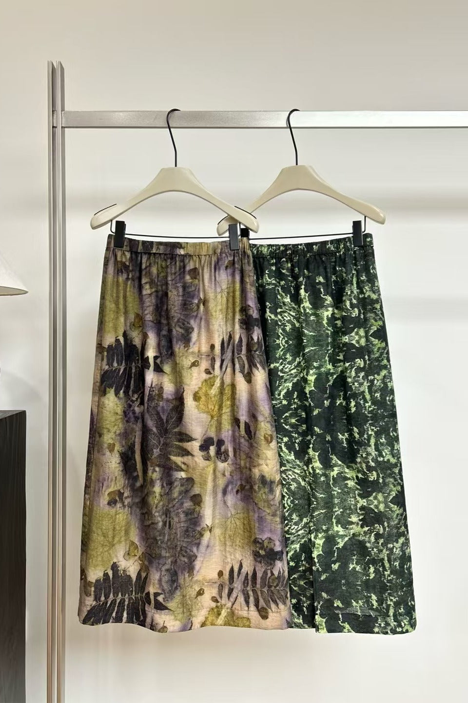 Falda romántica y elegante con estampado de hojas, mezcla de lyocell | 2 colores