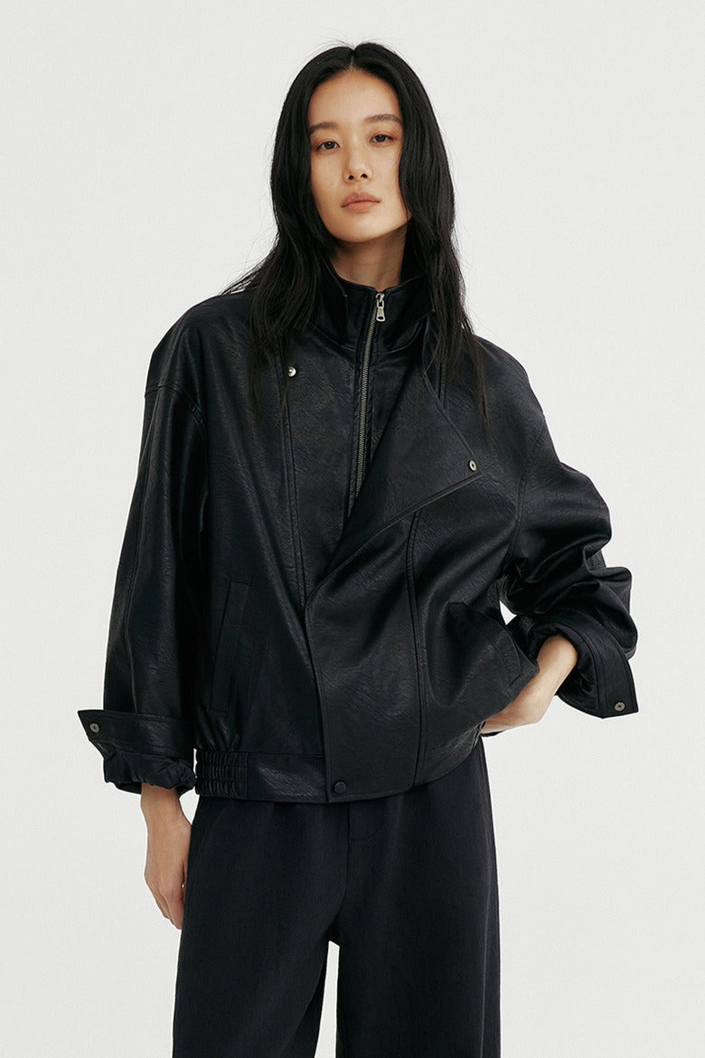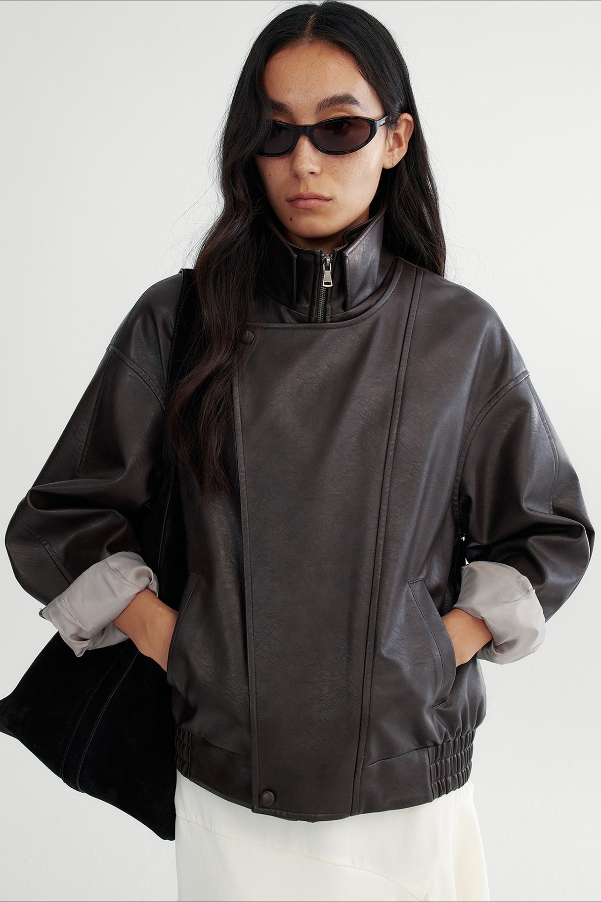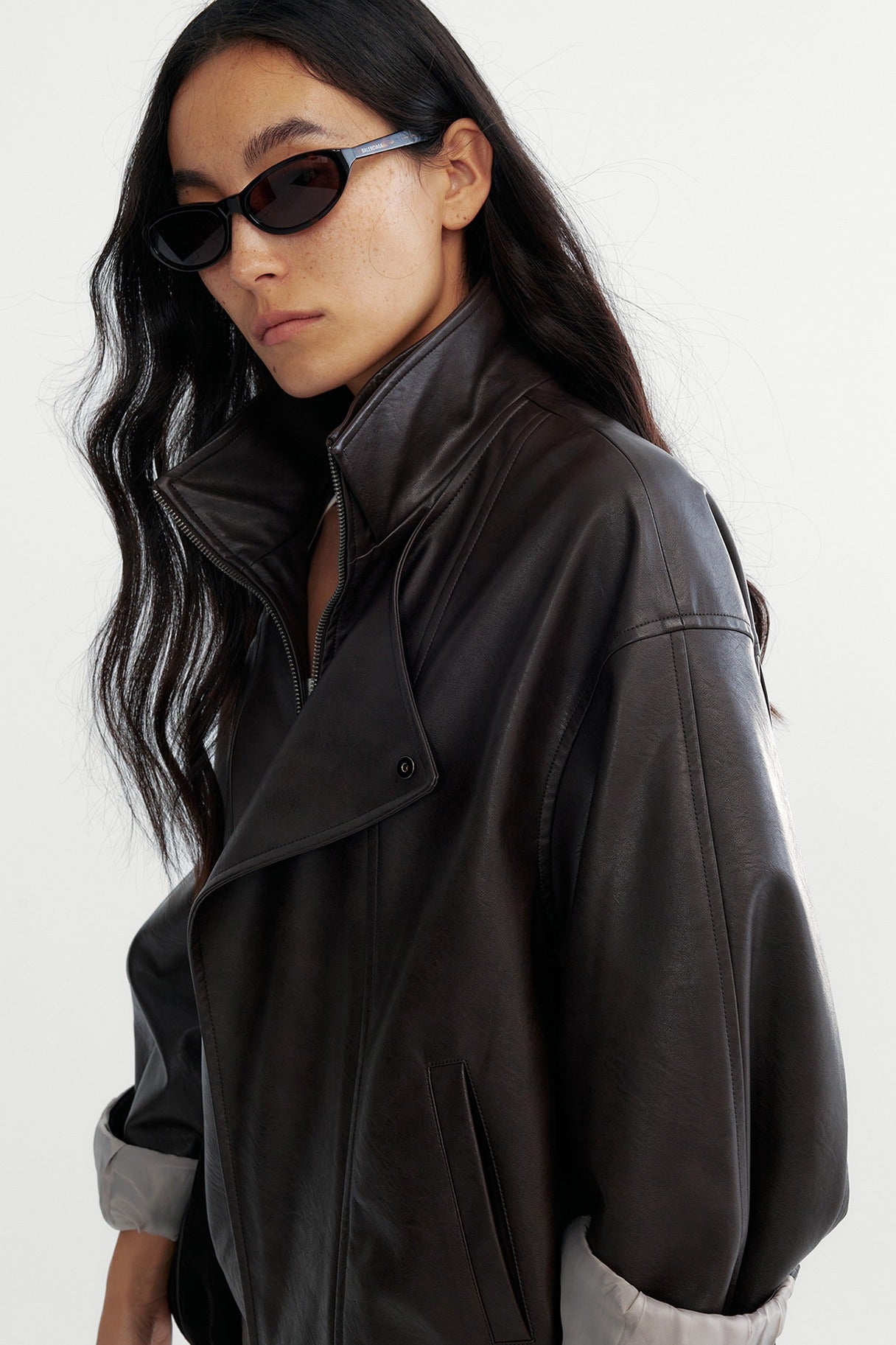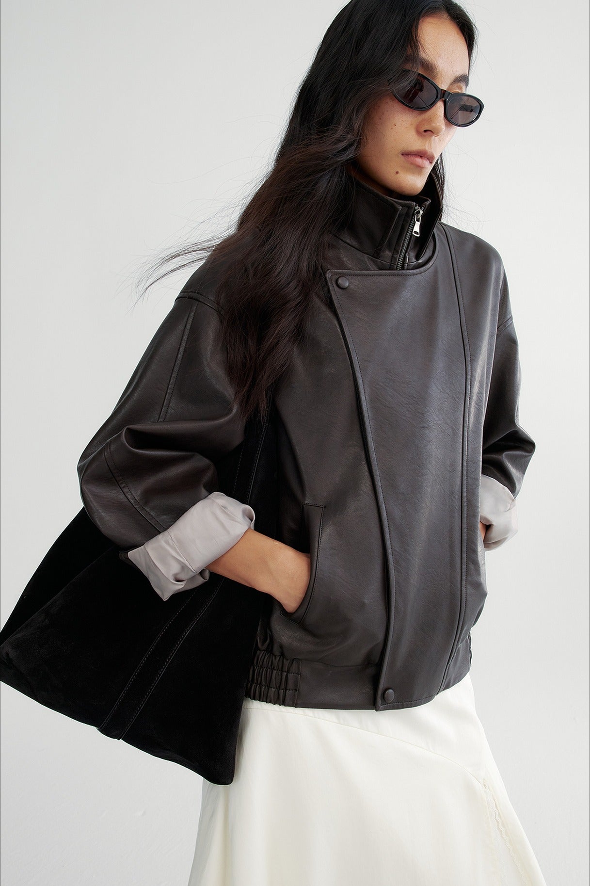 Chaqueta de estilo retro con paneles elegantes en mezcla de poliuretano | 2 colores