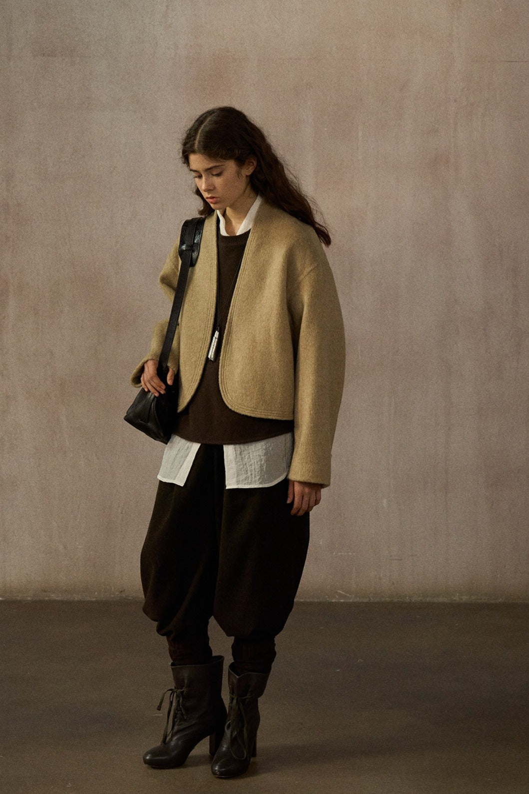 Chaqueta corta de corte estructurado en lana y alpaca | 4 colores