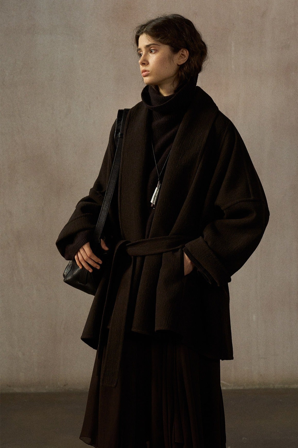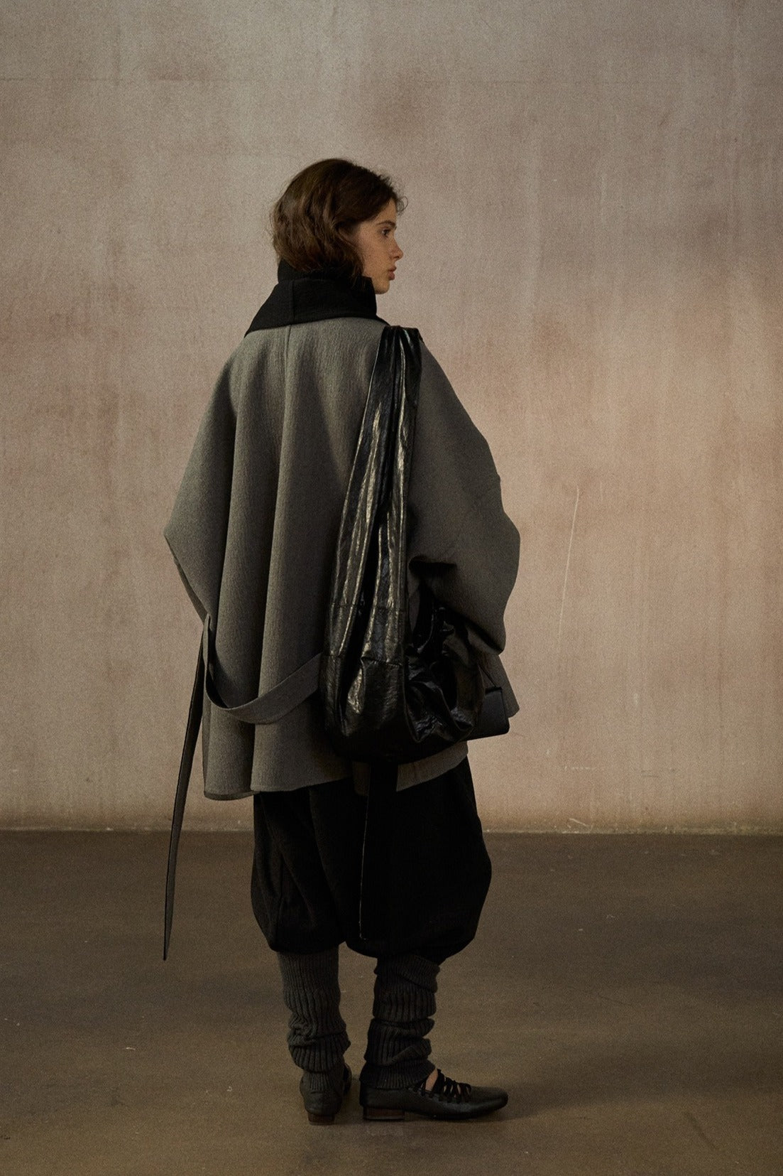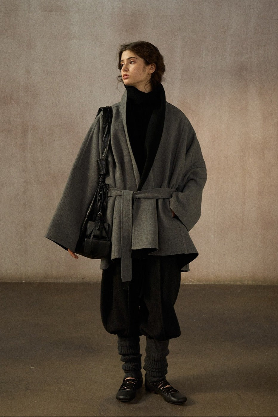 Este abrigo de largo medio, confeccionado en mezcla de lana de doble faz, presenta una silueta tipo murciélago. Su lujoso tejido y su corte holgado ofrecen un estilo atemporal y una gran comodidad, convirtiéndolo en la elección perfecta para cualquier ocasión.