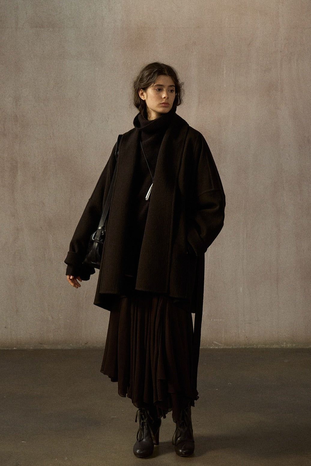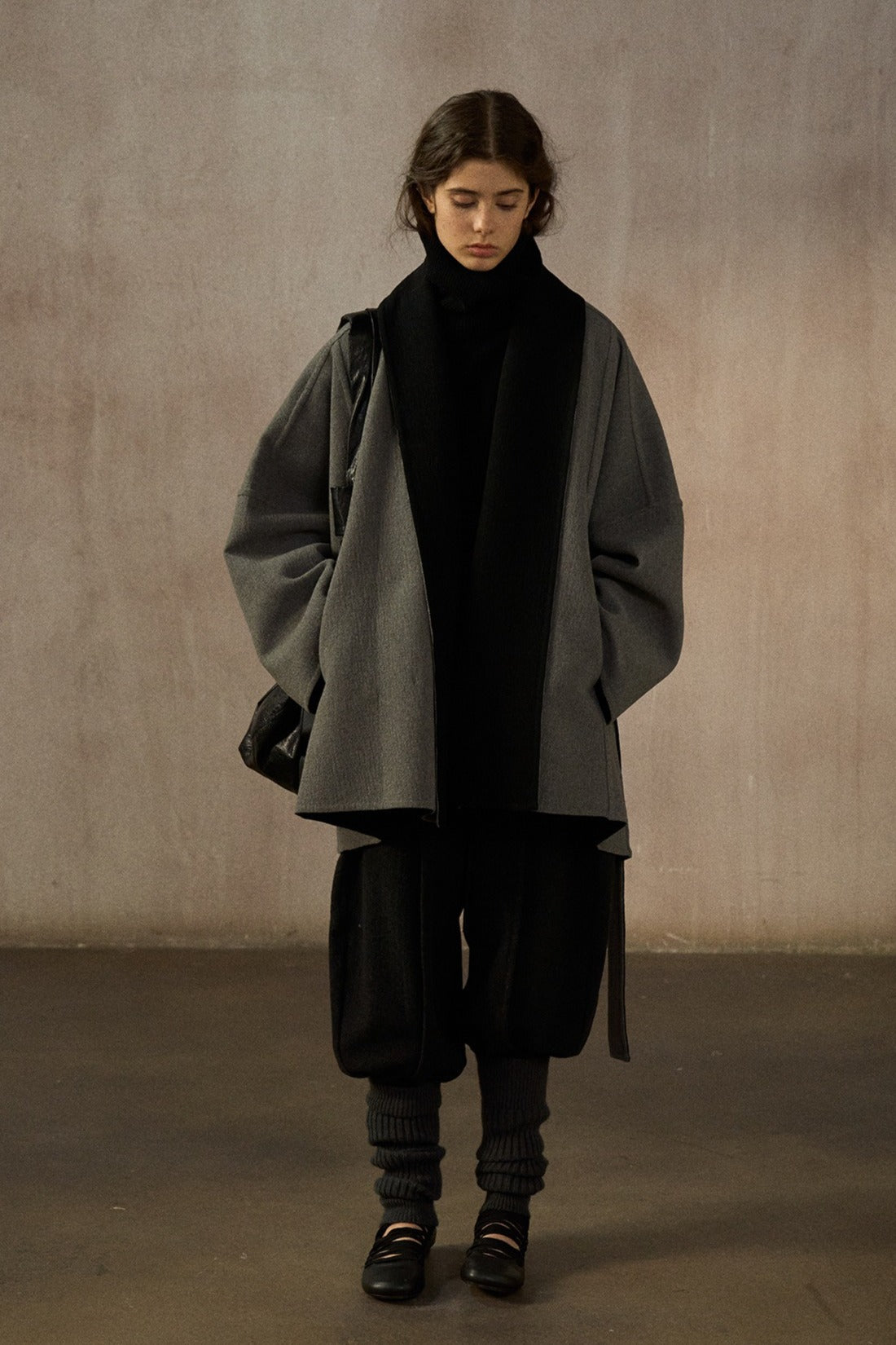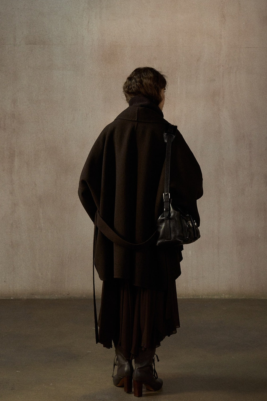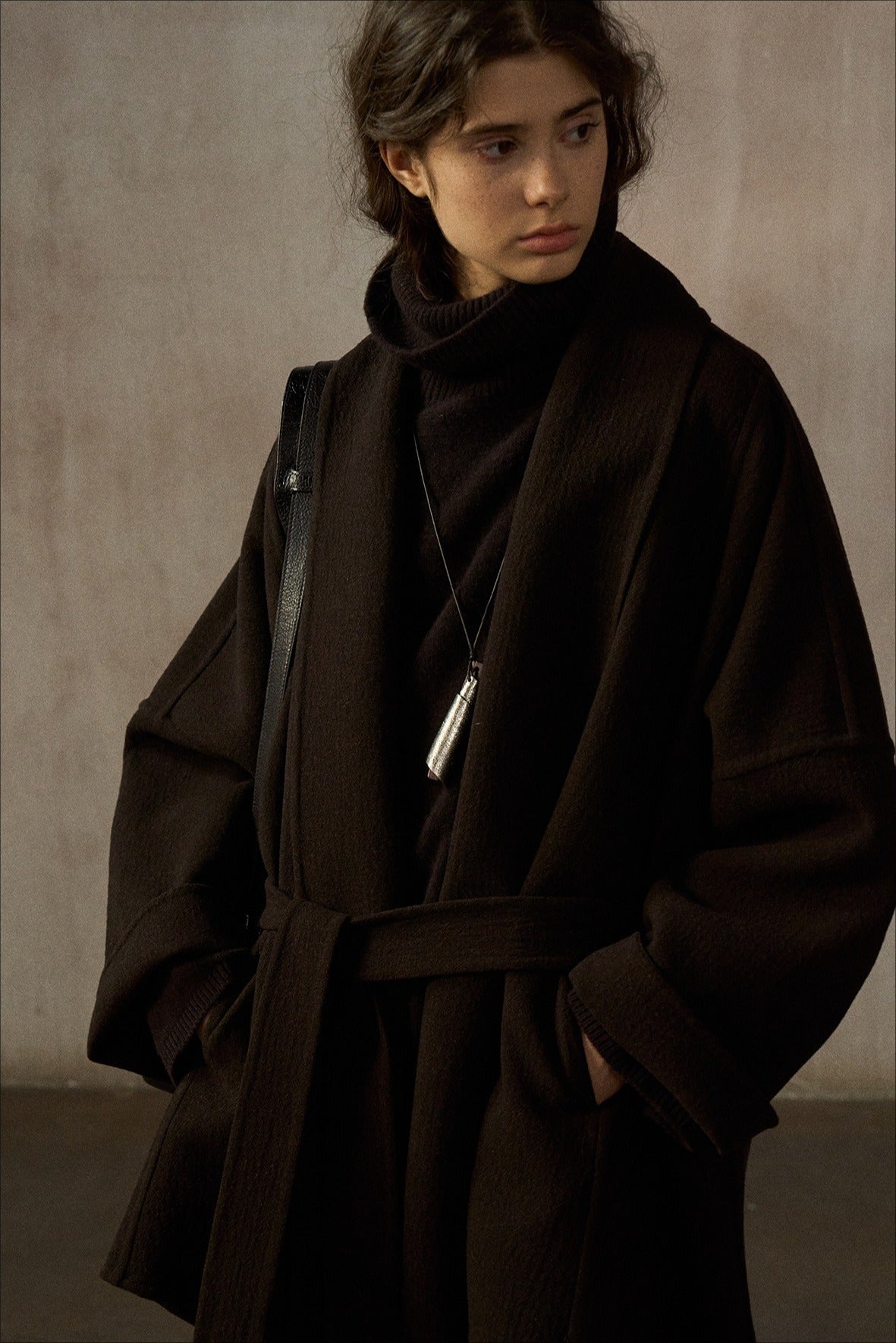 Este abrigo de largo medio, confeccionado en mezcla de lana de doble faz, presenta una silueta tipo murciélago. Su lujoso tejido y su corte holgado ofrecen un estilo atemporal y una gran comodidad, convirtiéndolo en la elección perfecta para cualquier ocasión.