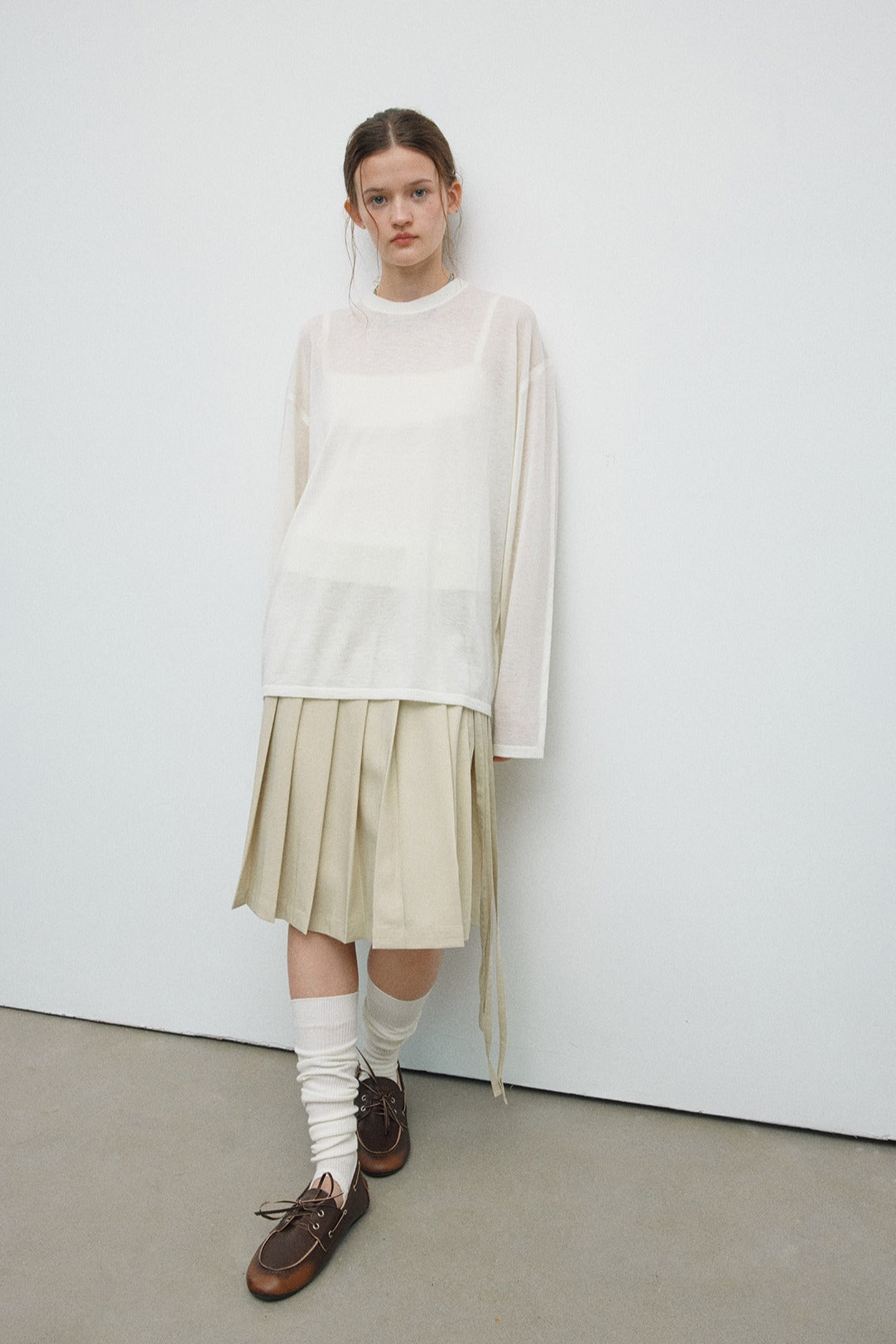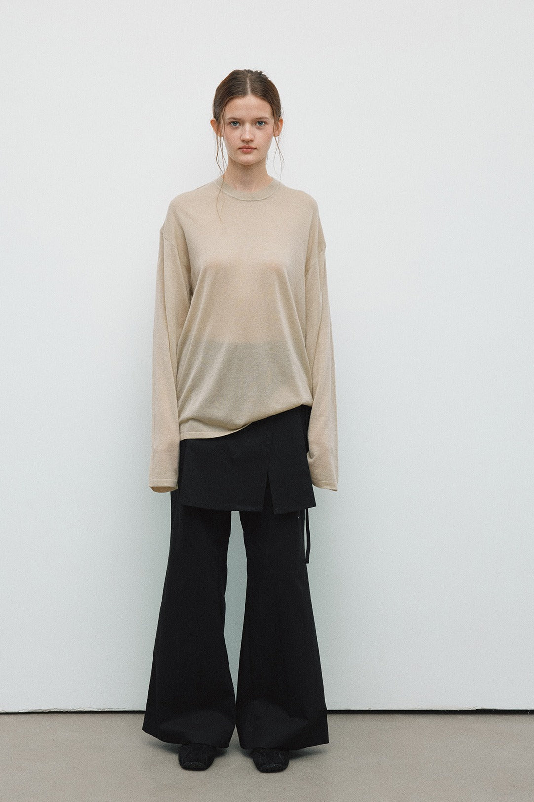 Camiseta de punto ligeramente transparente y de corte holgado con contenido de lana | 4 colores