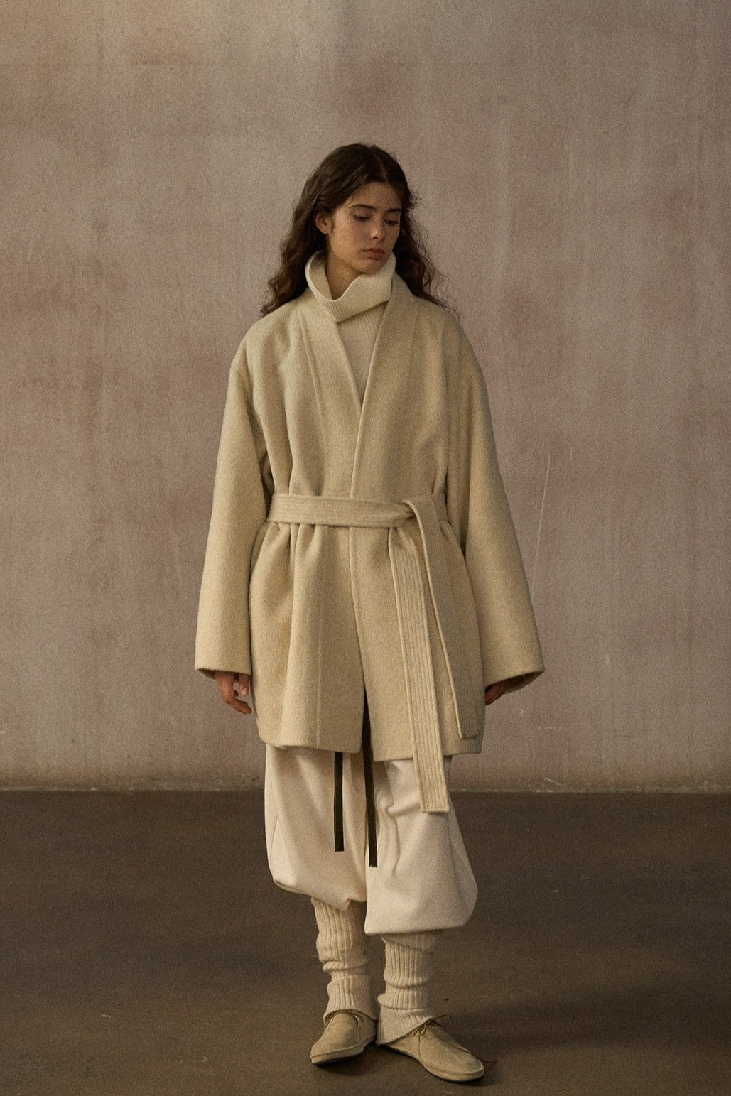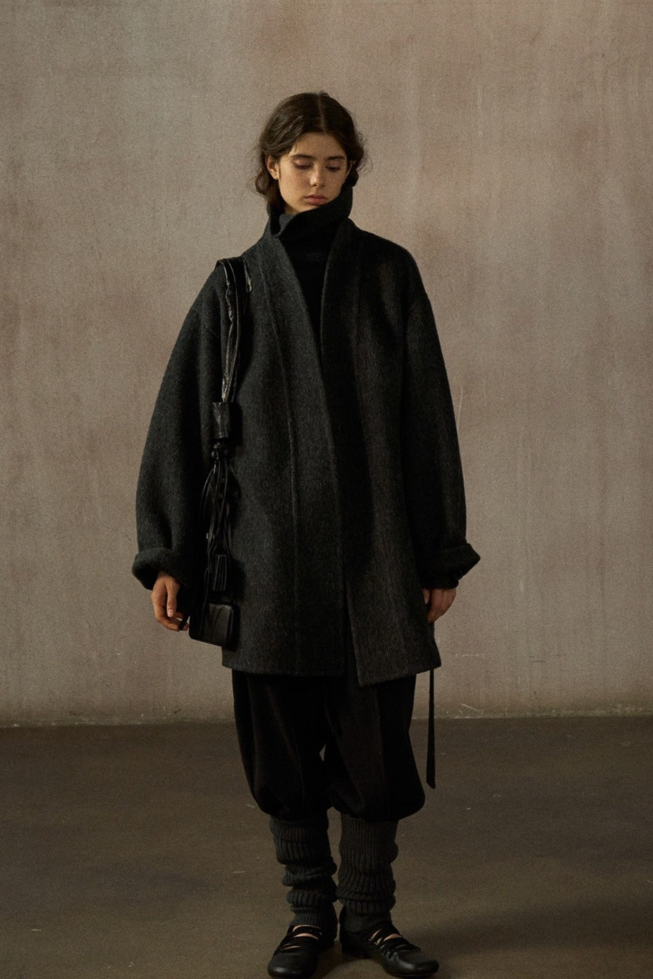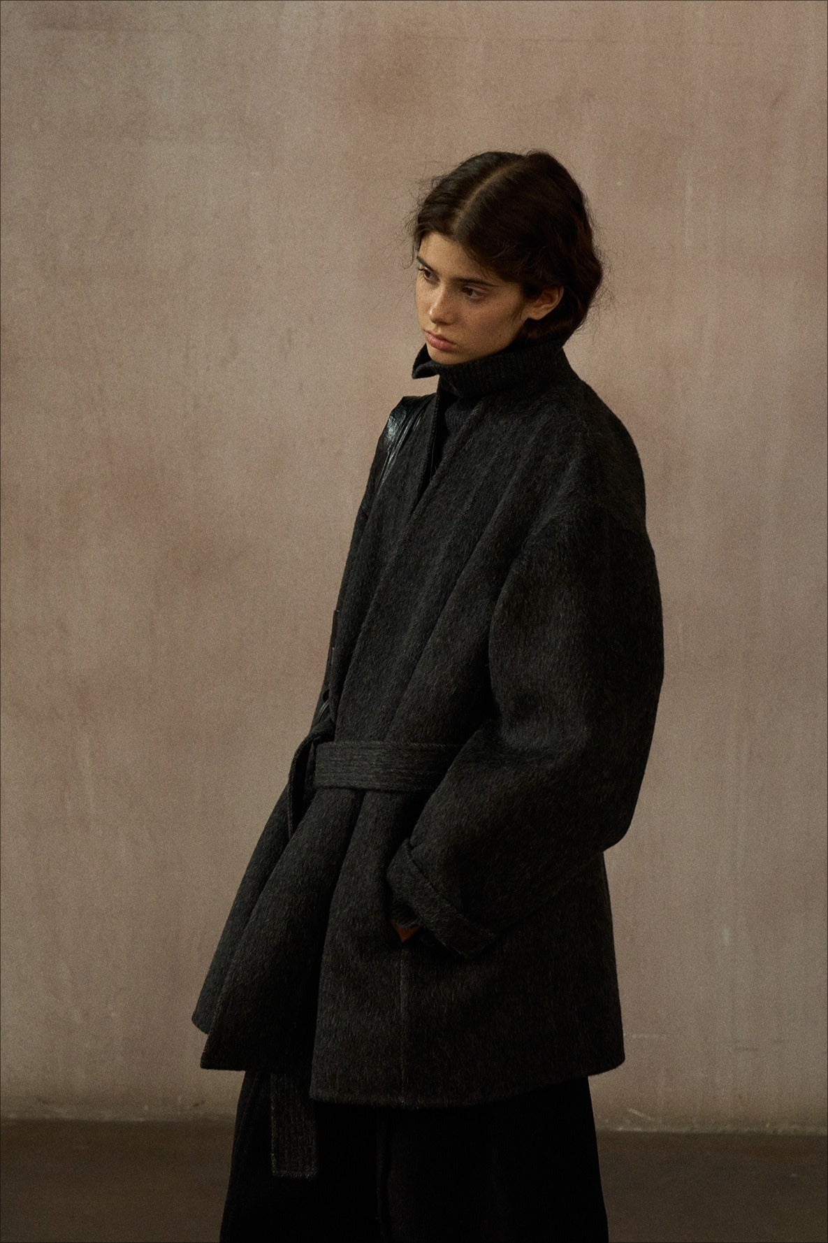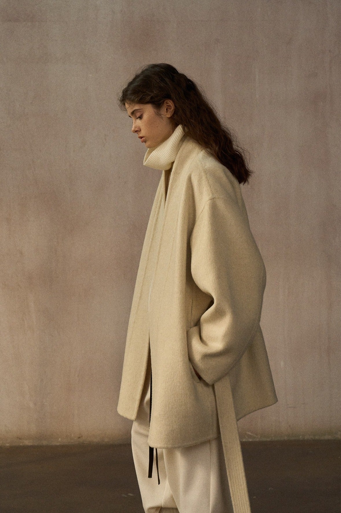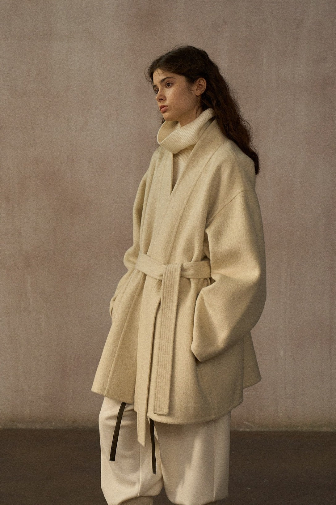 Bata de estilo clásico en tejido de doble faz de lana, seda y angora | 3 colores