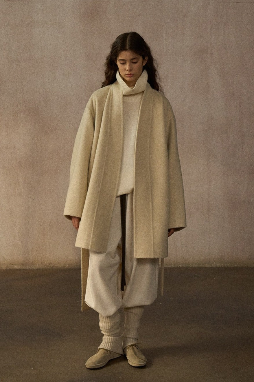 Este abrigo midi de doble faz, sin cuello, está confeccionado con una lujosa mezcla de lana, seda y angora. Presenta una silueta tipo bata que ofrece comodidad y elegancia. Perfecto para un look invernal sofisticado.