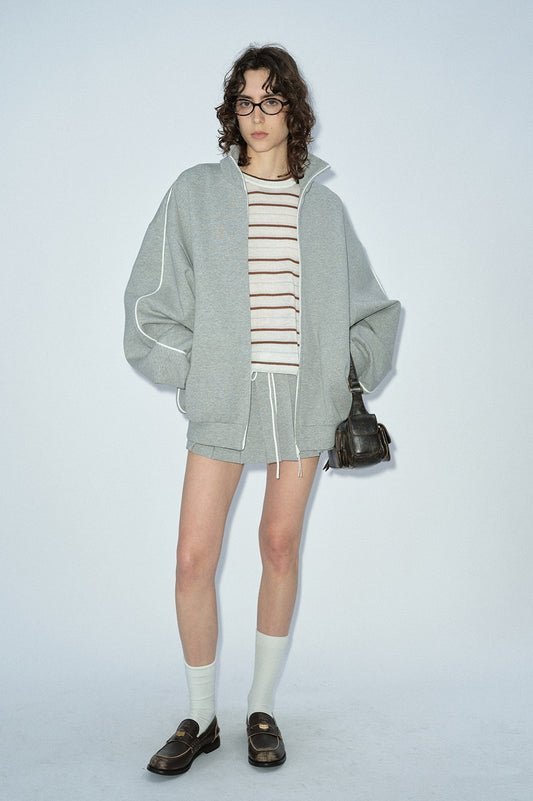 Veste à capuche à col montant en mélange de coton | 2 couleurs