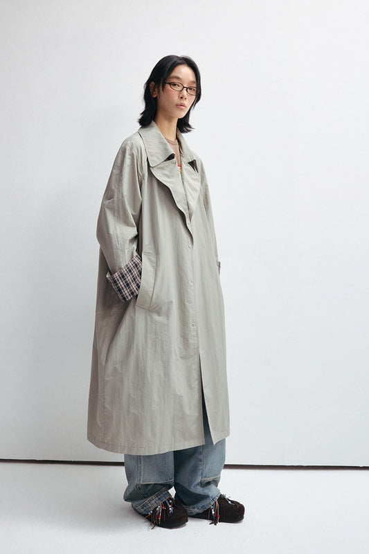 Trench-coat en coton mélangé à texture papier, coupe cocon