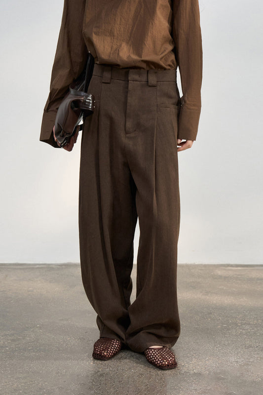 Pantalon décontracté à jambes larges en lin mélangé | 3 couleurs