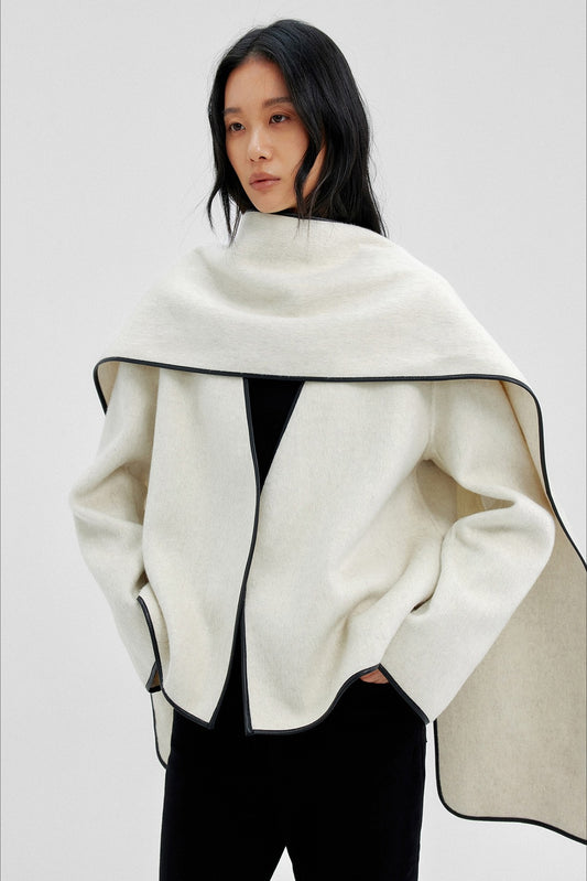 Wool-alpaca scarf-collar elegant jacket | 3 color