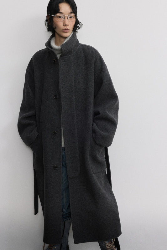Manteau minimaliste en tissu double face 100 % laine de mouton | 2 couleurs