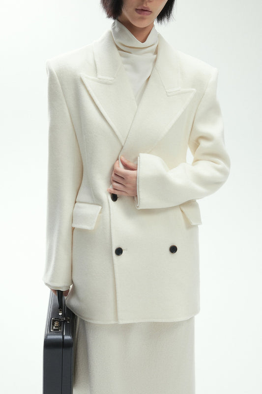 Veste blazer en tissu double face 100 % laine avec silhouette en sablier