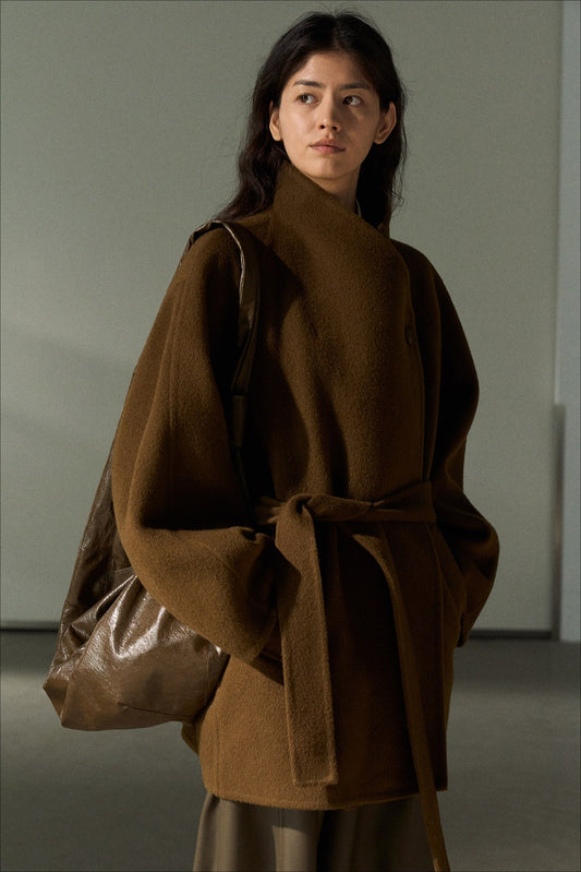Manteau silhouette en laine double face en laine | 4 couleurs