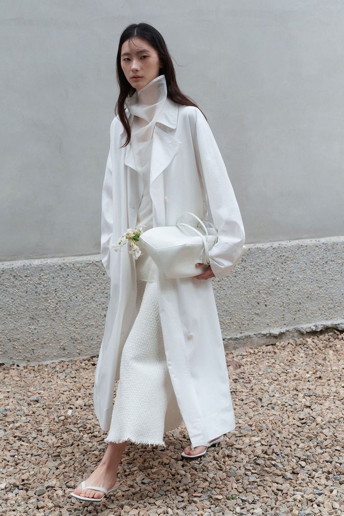 Trench-coat long minimaliste en tissu froissé | 2 couleurs