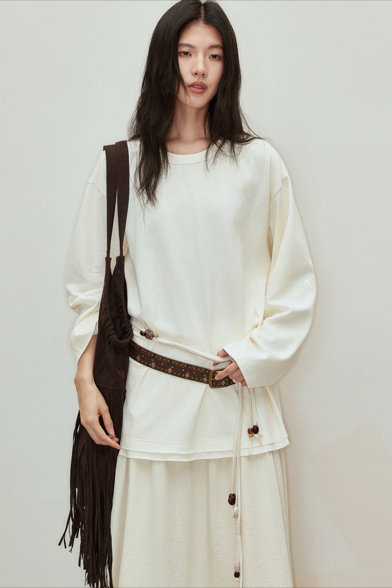Chemisier drapé fluide avec cravate en mélange modal | 2 couleurs