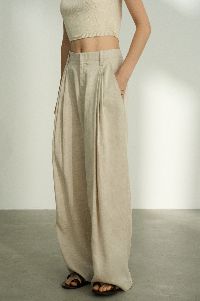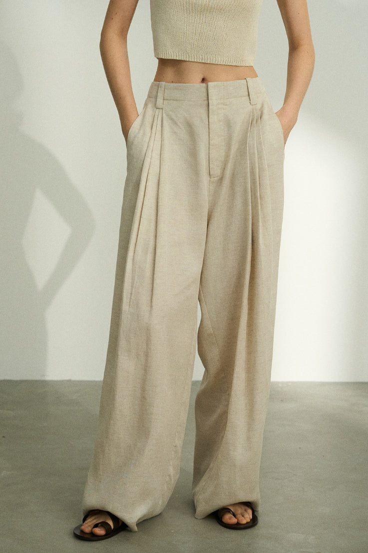 Pantalon droit en lin mélangé lyocell | 3 couleurs