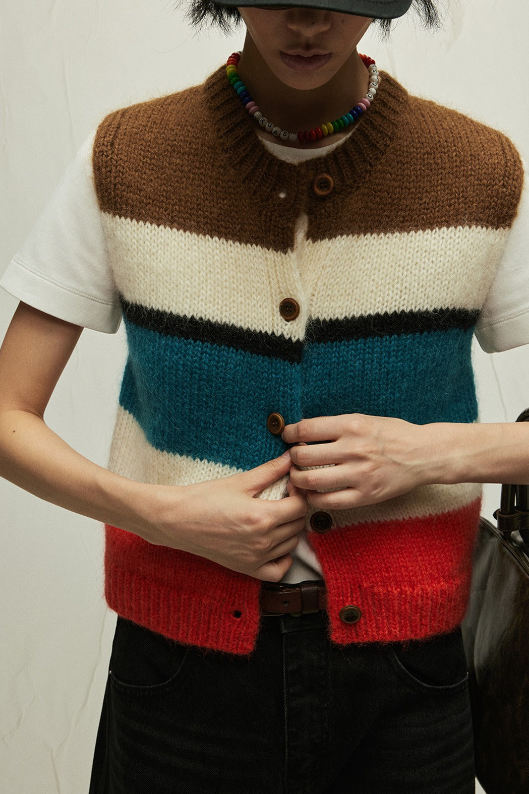 Gilet ajusté à rayures color-block en mélange de laine | 3 couleurs