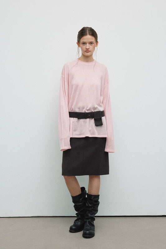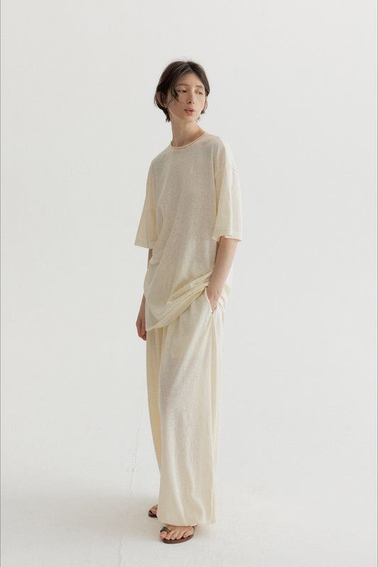 T-shirt en tricot légèrement transparent à coupe ample contenant de la laine | 4 couleurs