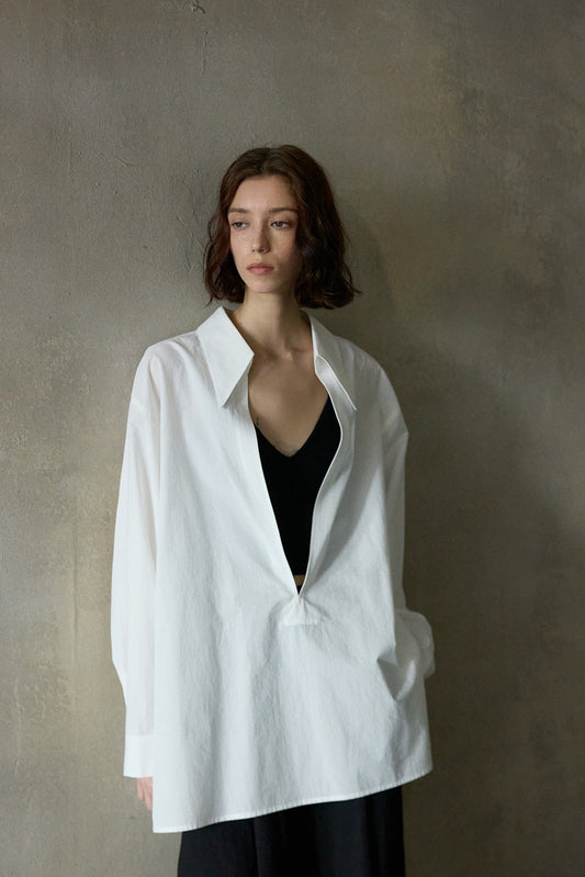 Chemise en coton mélangé à ourlet irrégulier et ouverture oblique | 2 couleurs