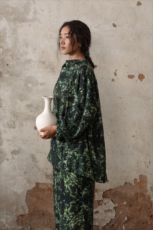 Lyocell blend romantic leaf print shirt | 2 color