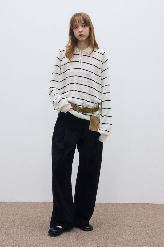 Wool blend loose-fit striped polo sweater | 4 color