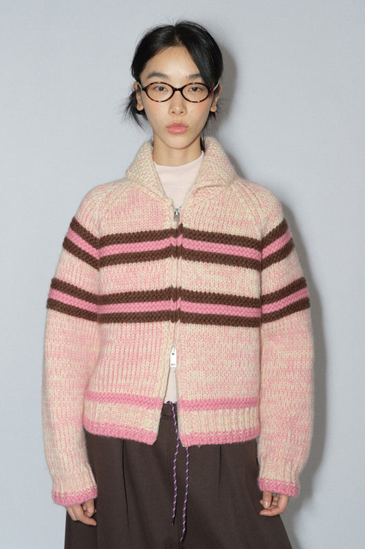 Cardigan en maille chinée épaisse 100 % laine | 2 couleurs
