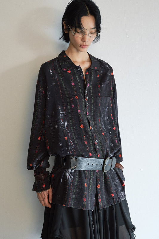 Linen blend relaxed-fit embroidery shirt | 3 color