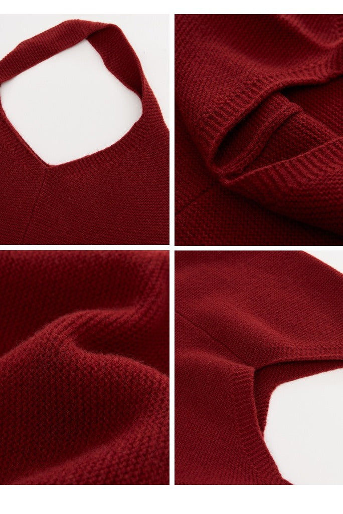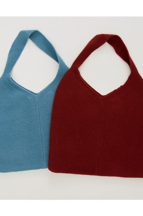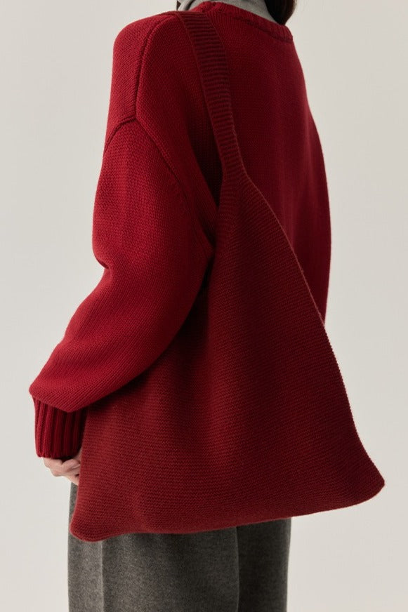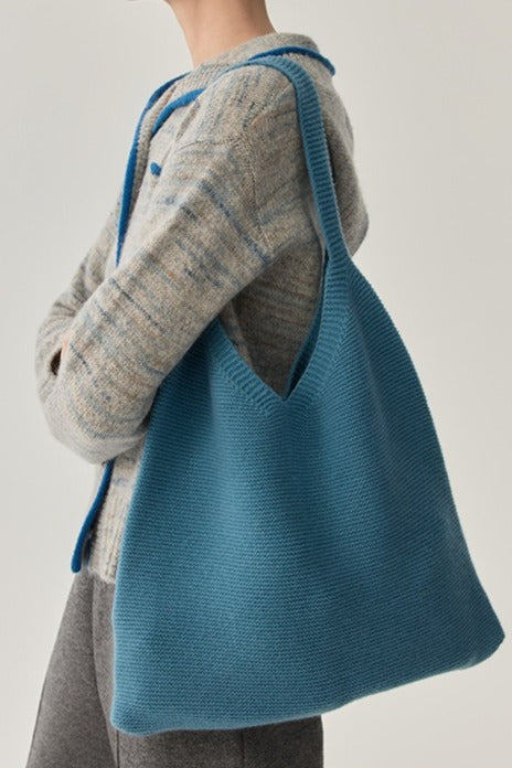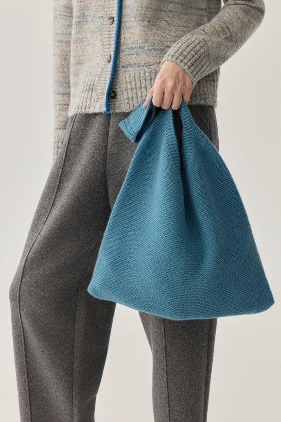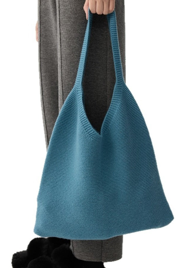 This simple elegant daily bag is made from solid-colored knitted wool. It features a wide opening for easy access and a timeless design.