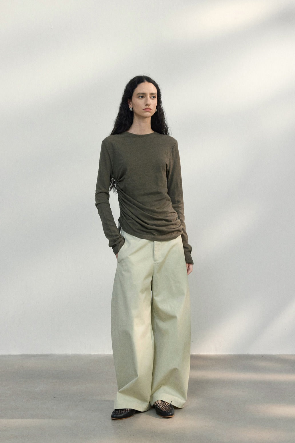 Haut en maille plissée asymétrique en lin et coton | 5 couleurs