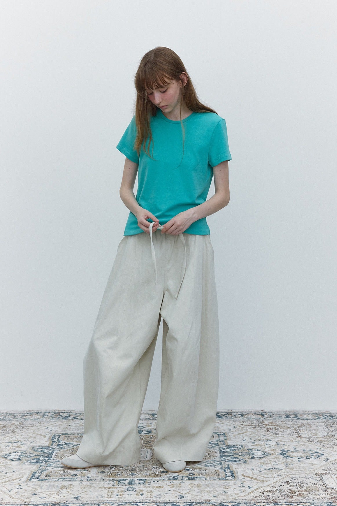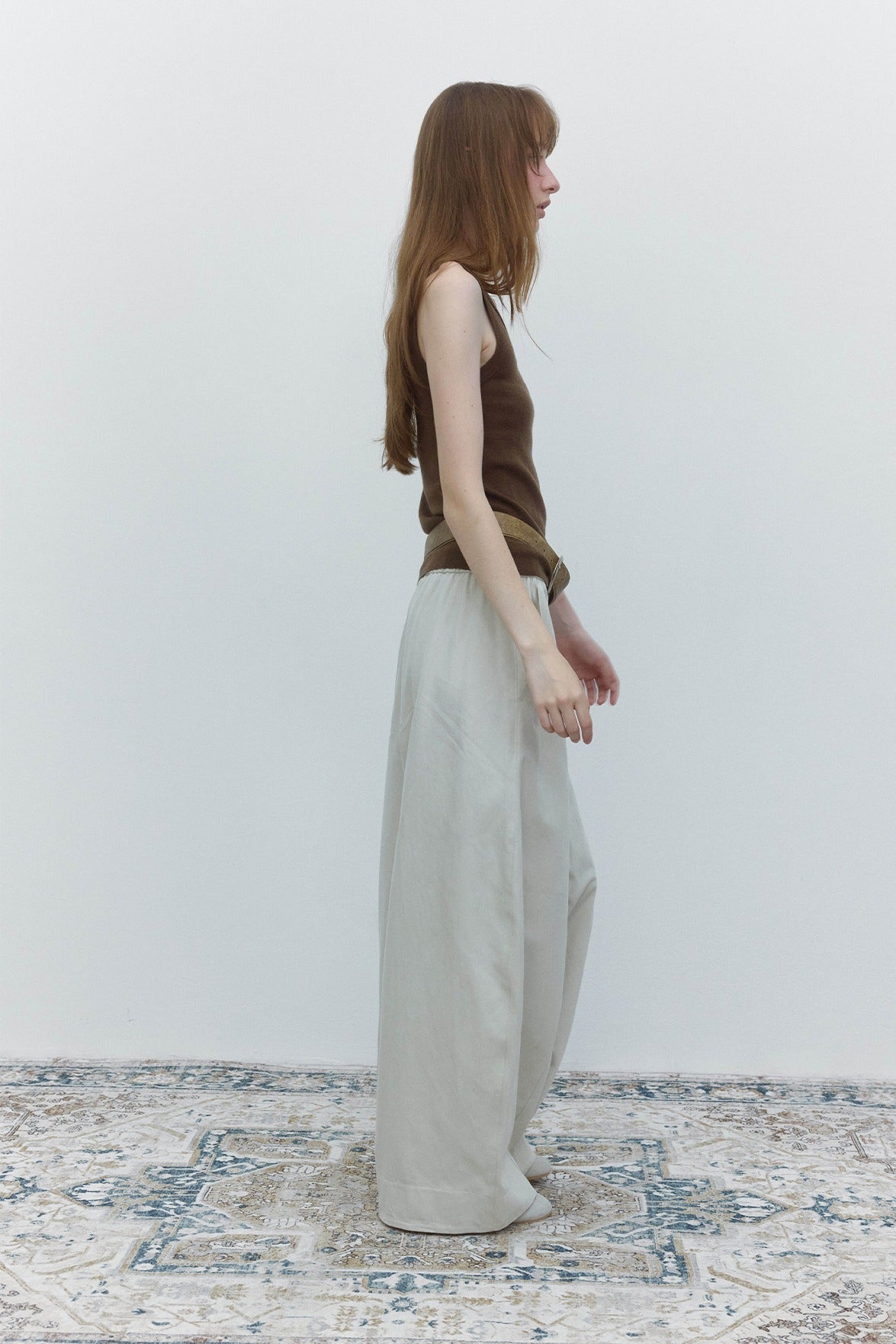 Confectionné en lyocell-coton, ce pantalon ample à taille haute se resserre grâce à une ceinture ton sur ton pour un ajustement facile. Sa couleur unie et son drapé fluide en font un incontournable décontracté par excellence.