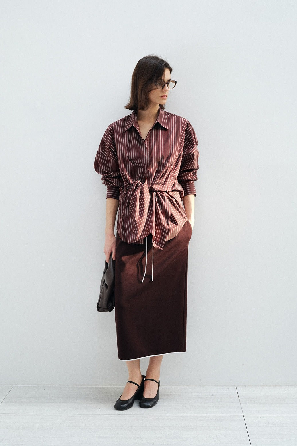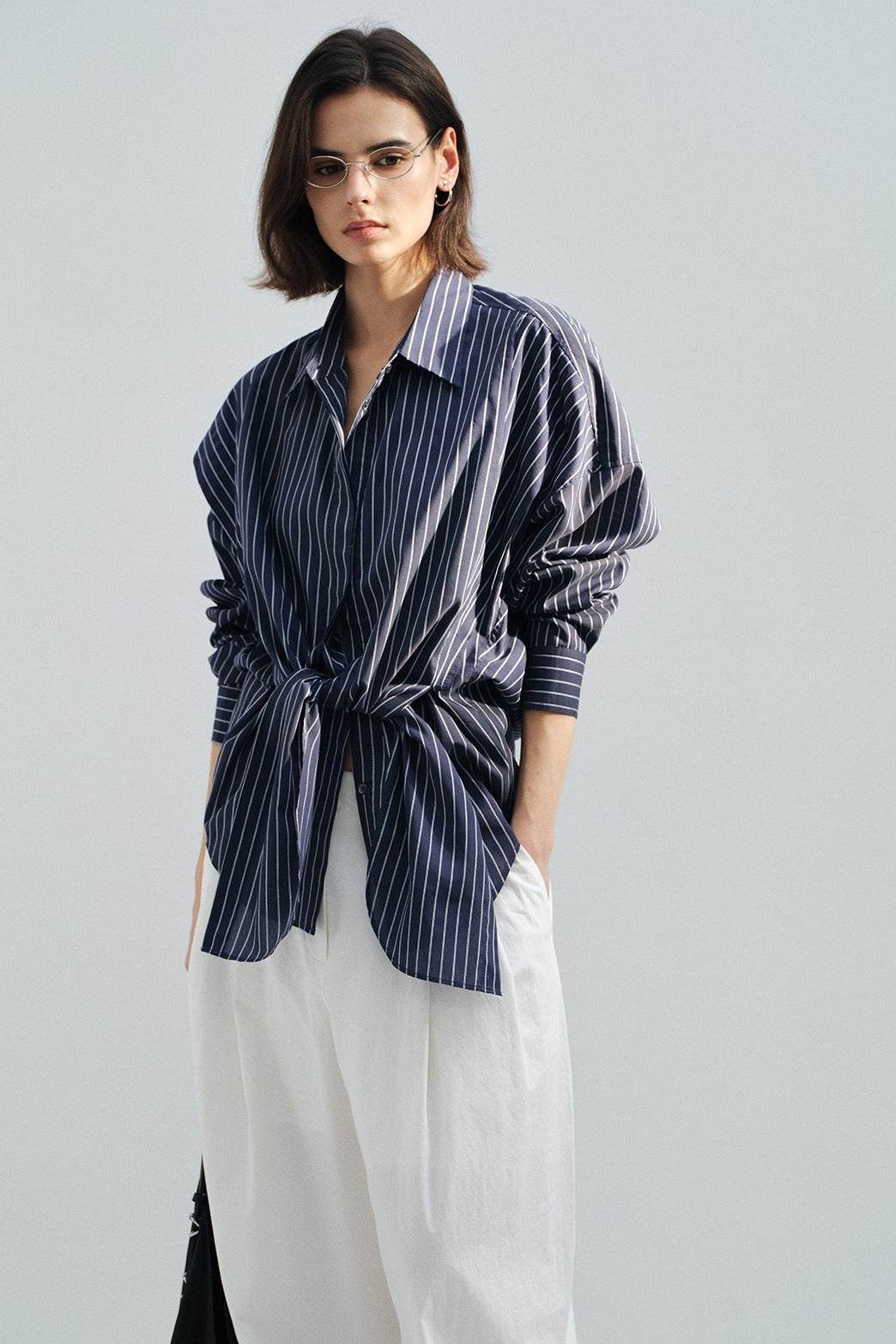 Chemisier drapé fluide avec cravate en mélange modal | 2 couleurs