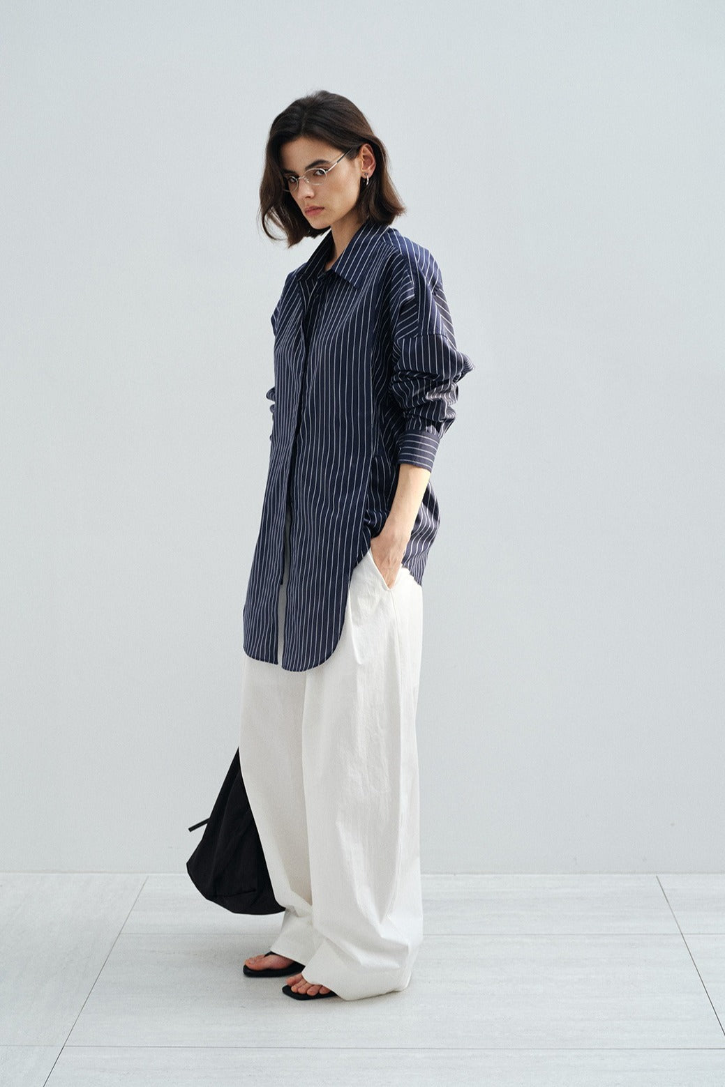 Trench-coat long minimaliste en tissu froissé | 2 couleurs -