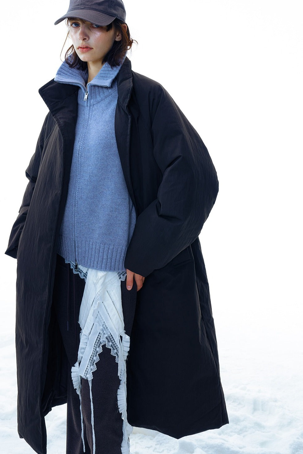 Cette doudoune longue arbore un design classique avec une fermeture magnétique. Garnie de duvet de canard blanc, elle offre une chaleur exceptionnelle et une allure élégante et raffinée.