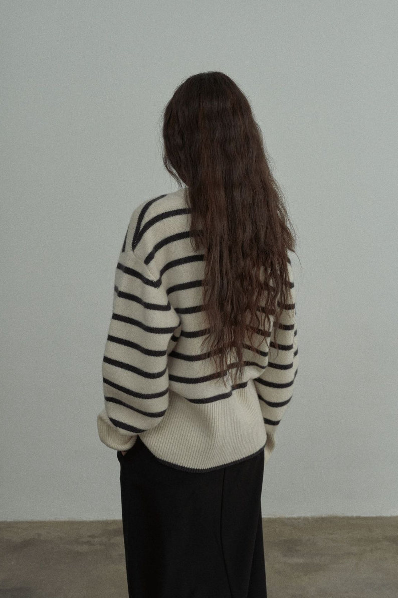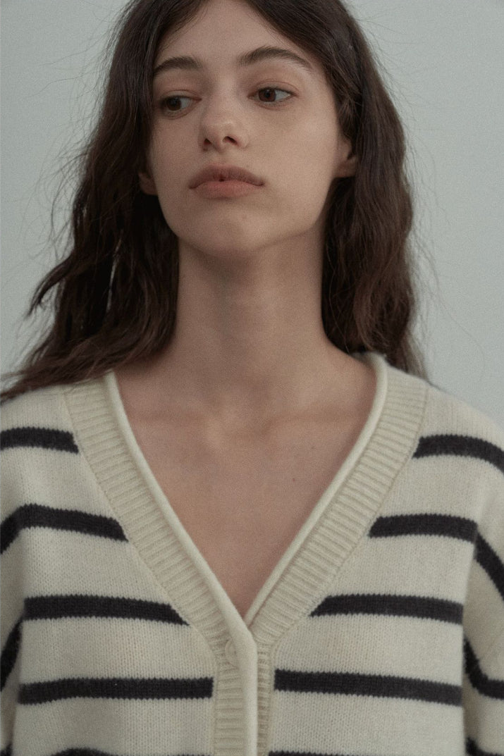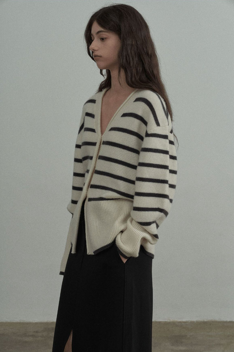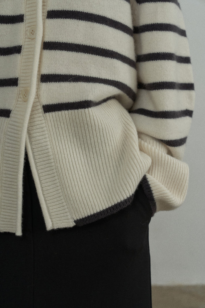 Cardigan tricoté à rayures en pure laine | 2 couleurs