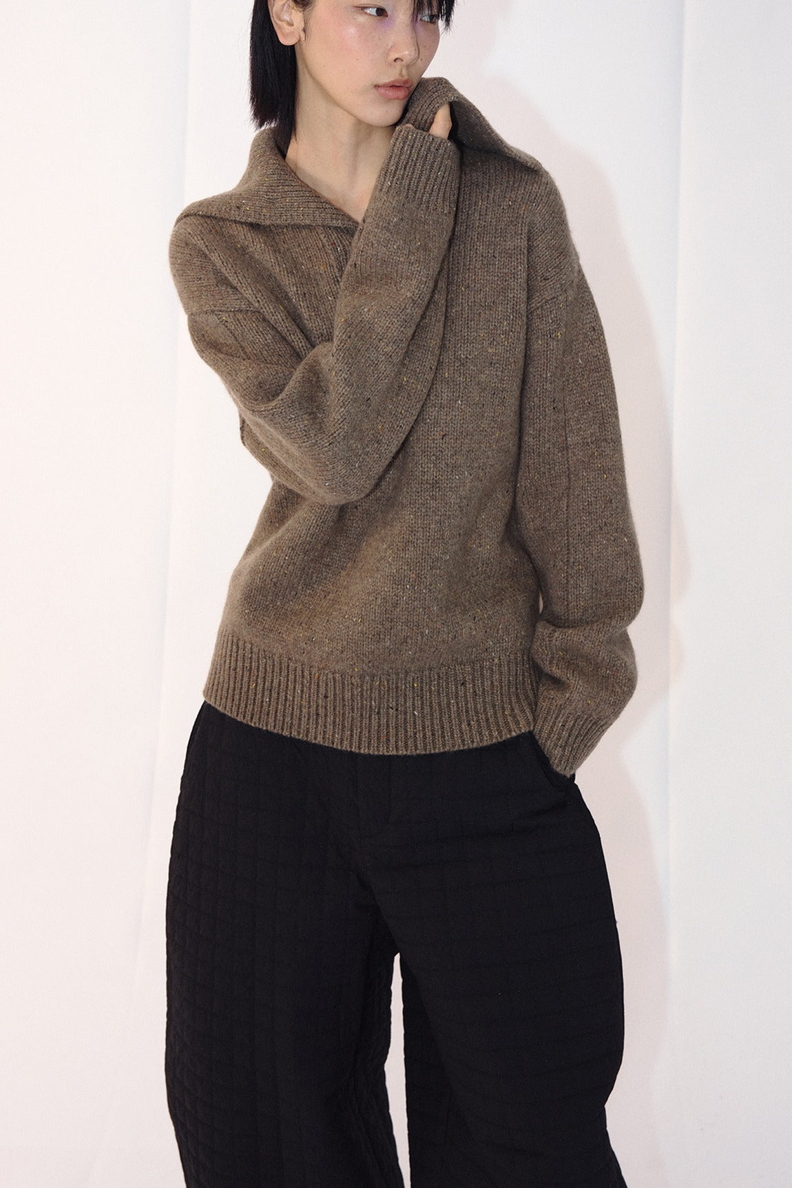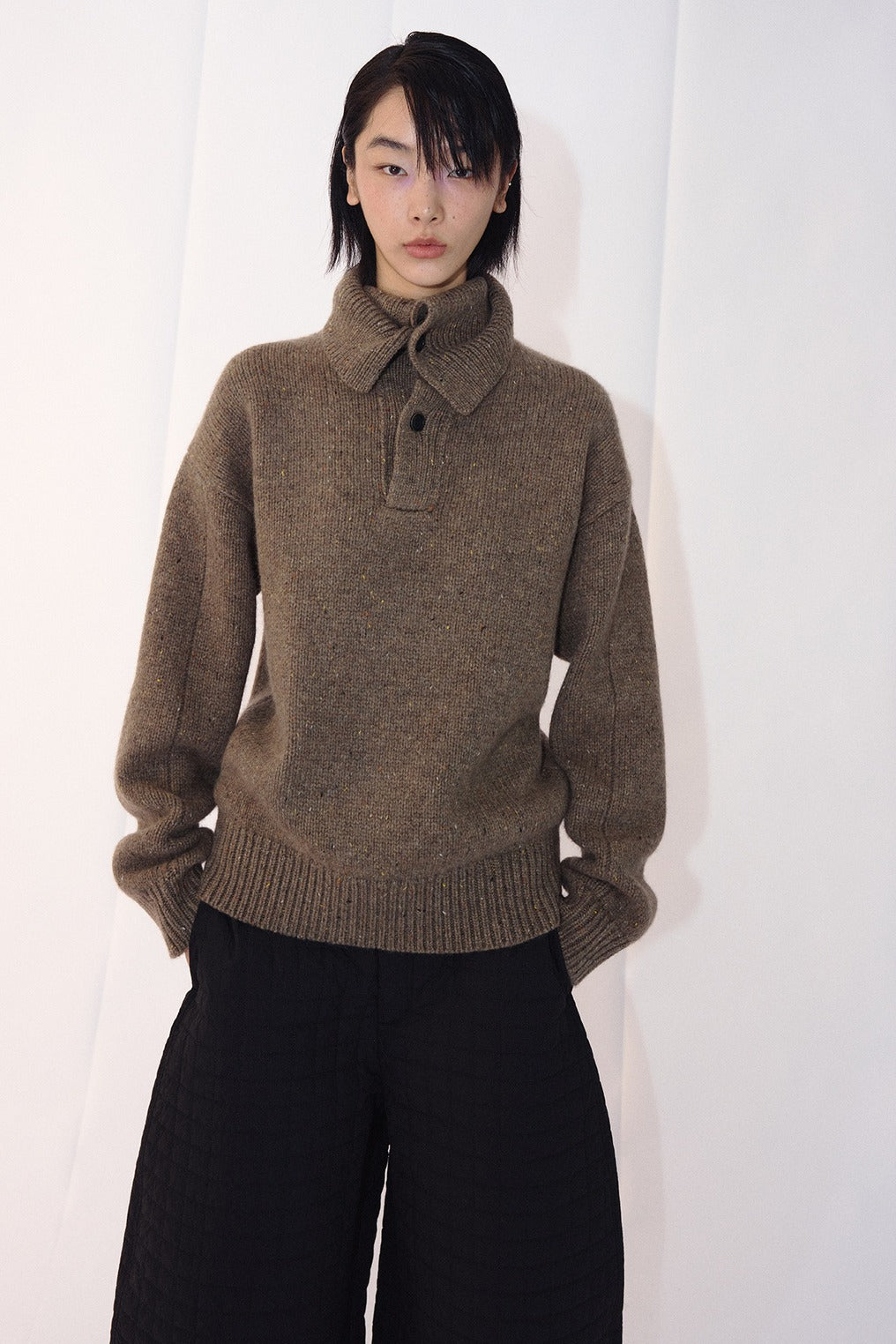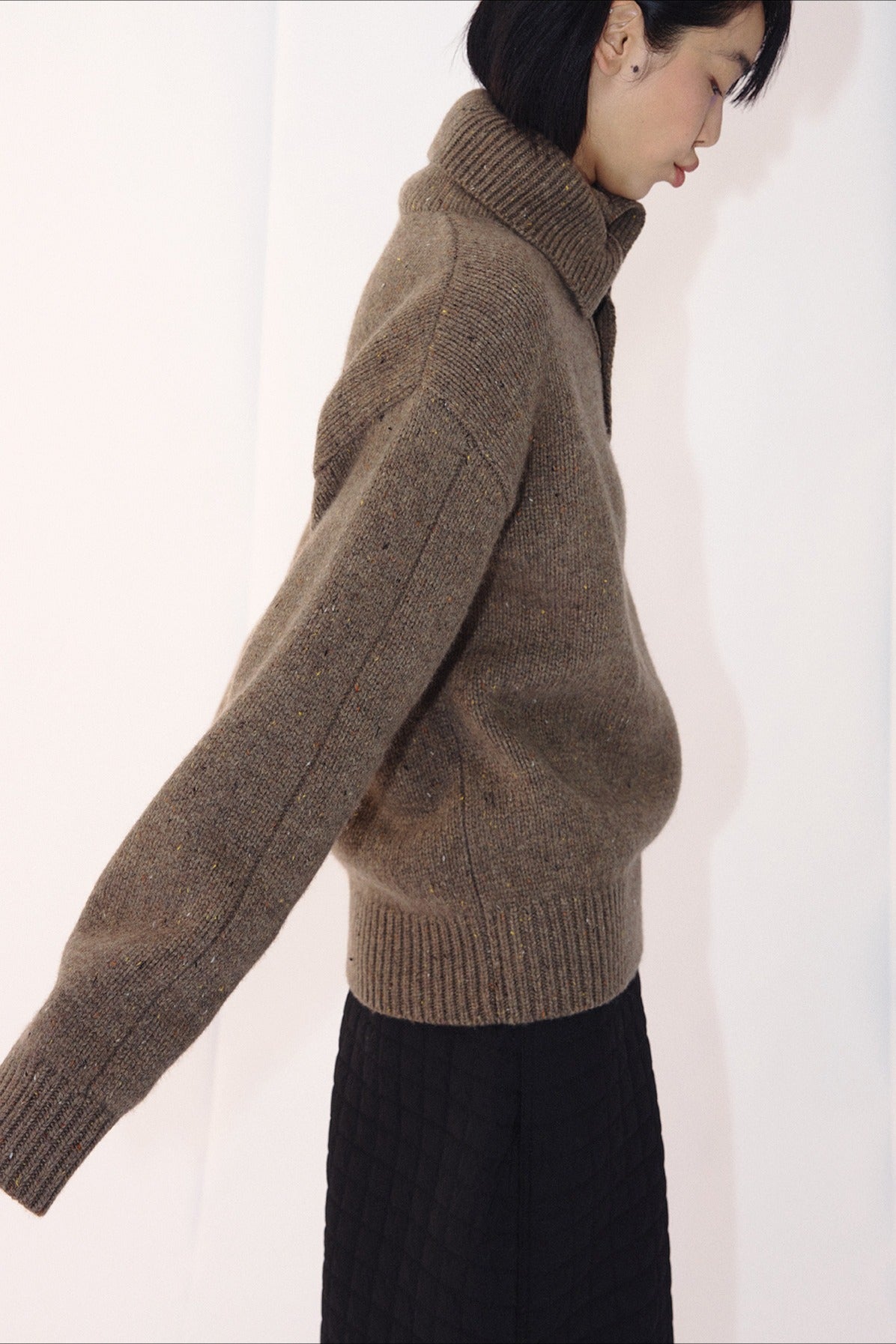 Pull en maille chinée à col montant en mélange de laine | 3 couleurs