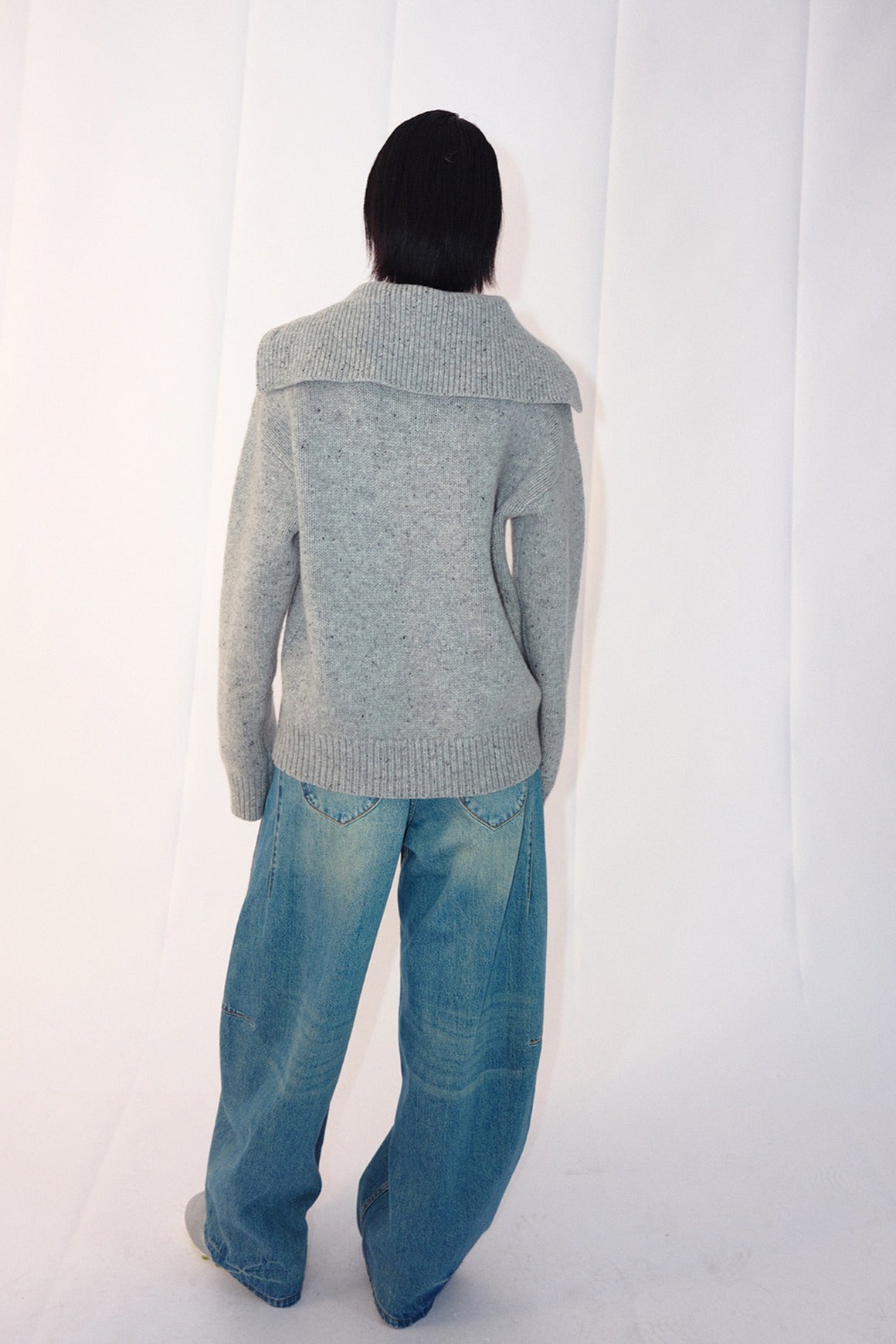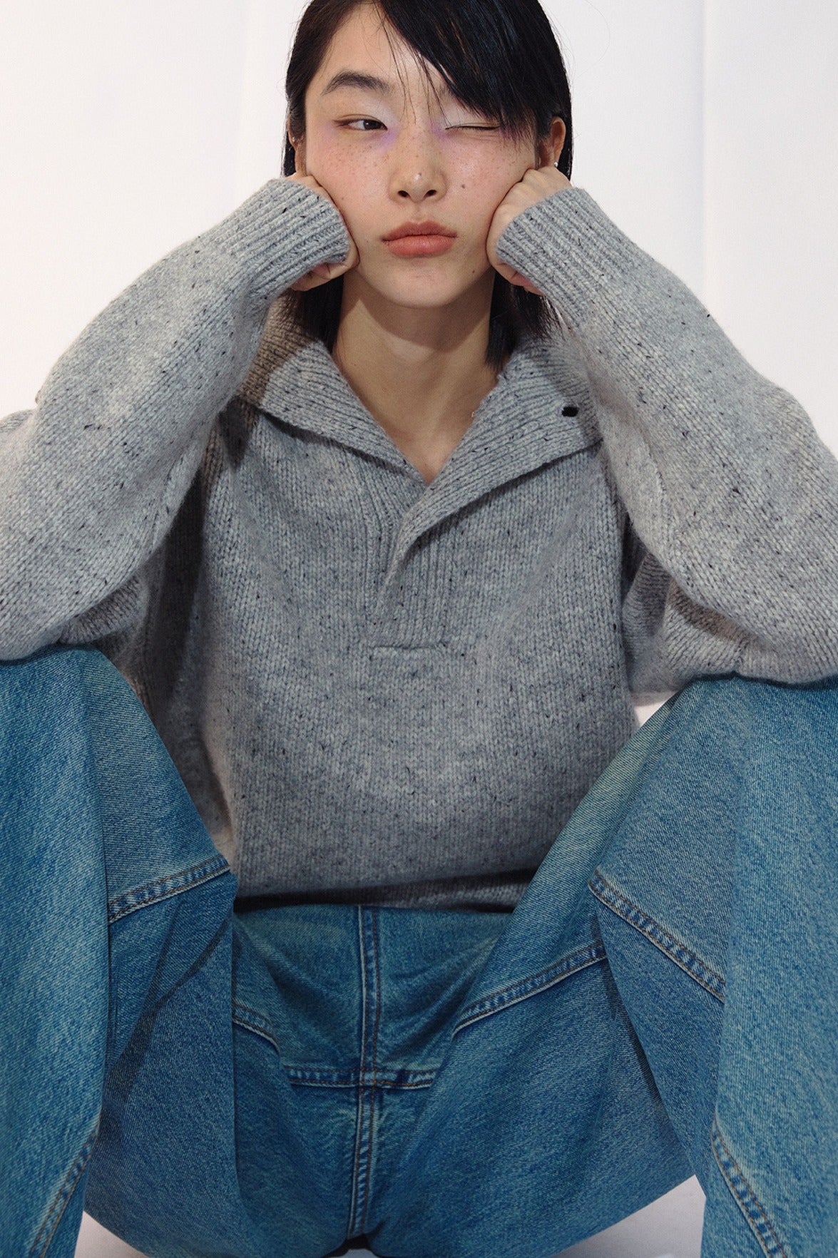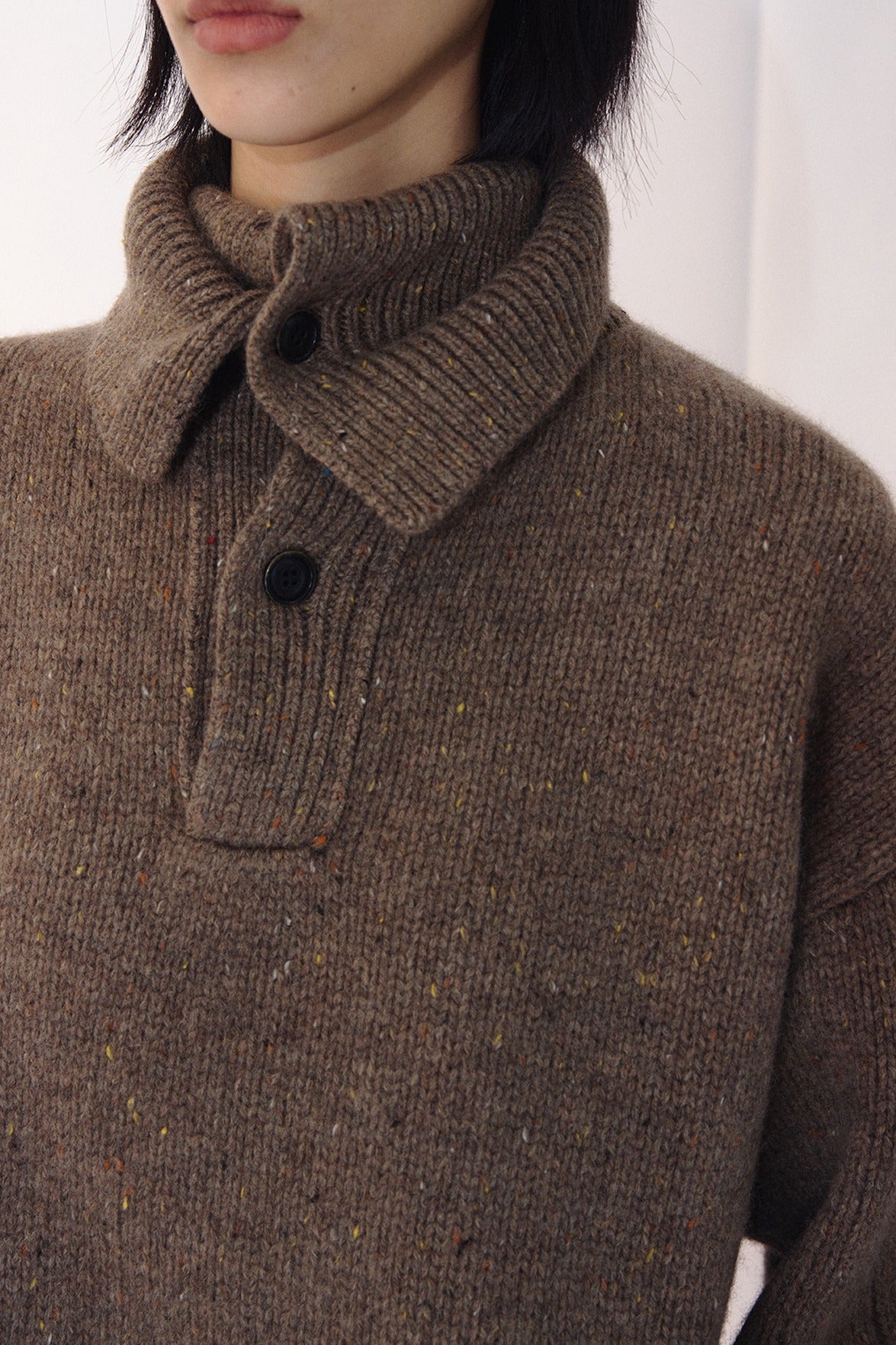 Pull en maille chinée à col montant en mélange de laine | 3 couleurs