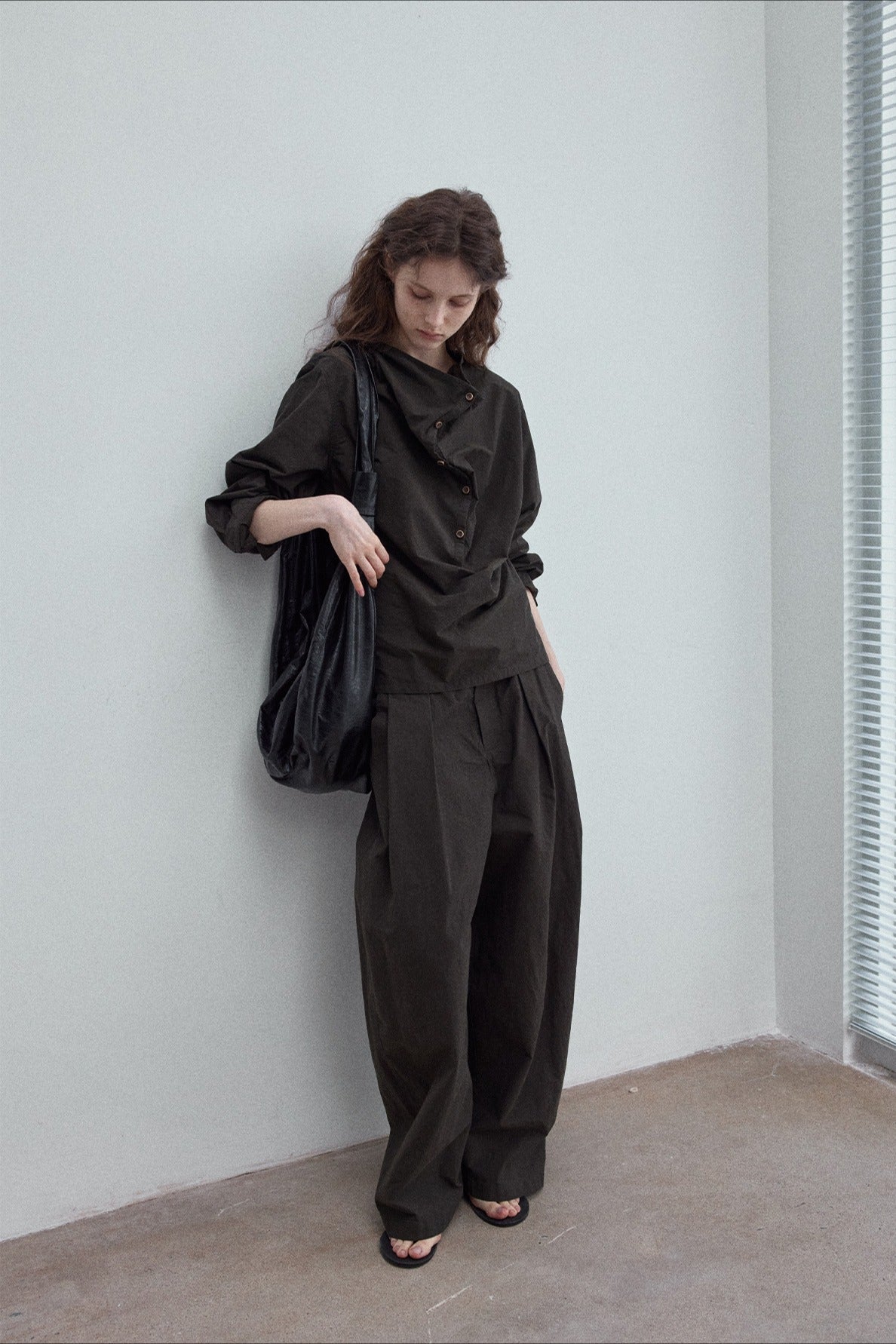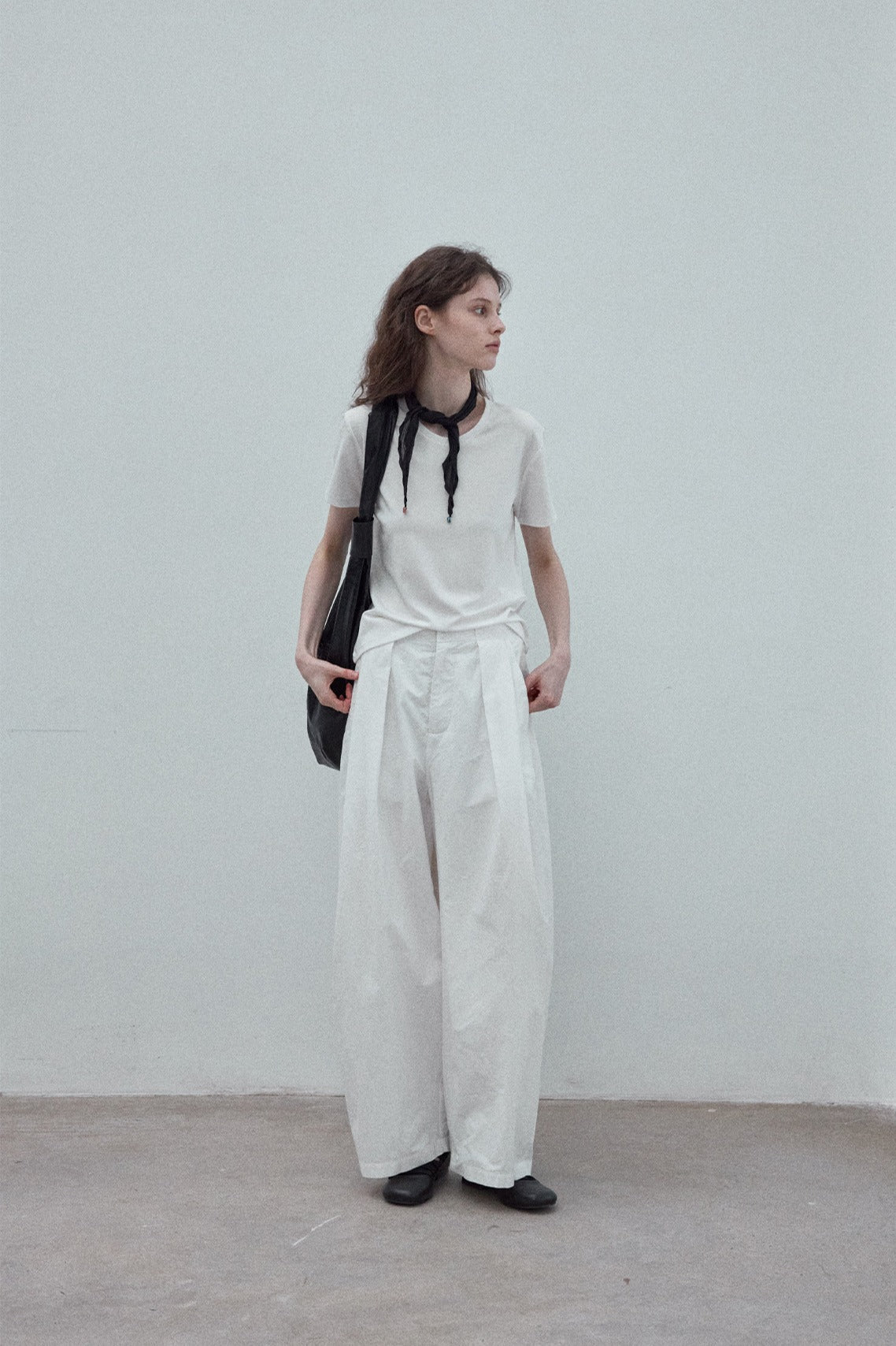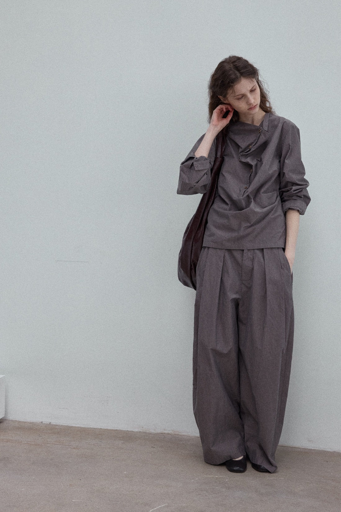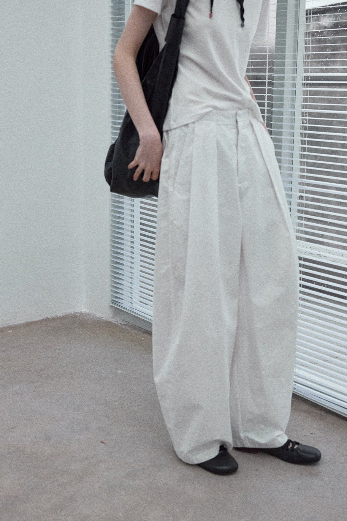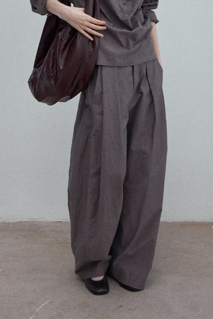 100% cotton cocoon shape pleats casual pants | 3 color