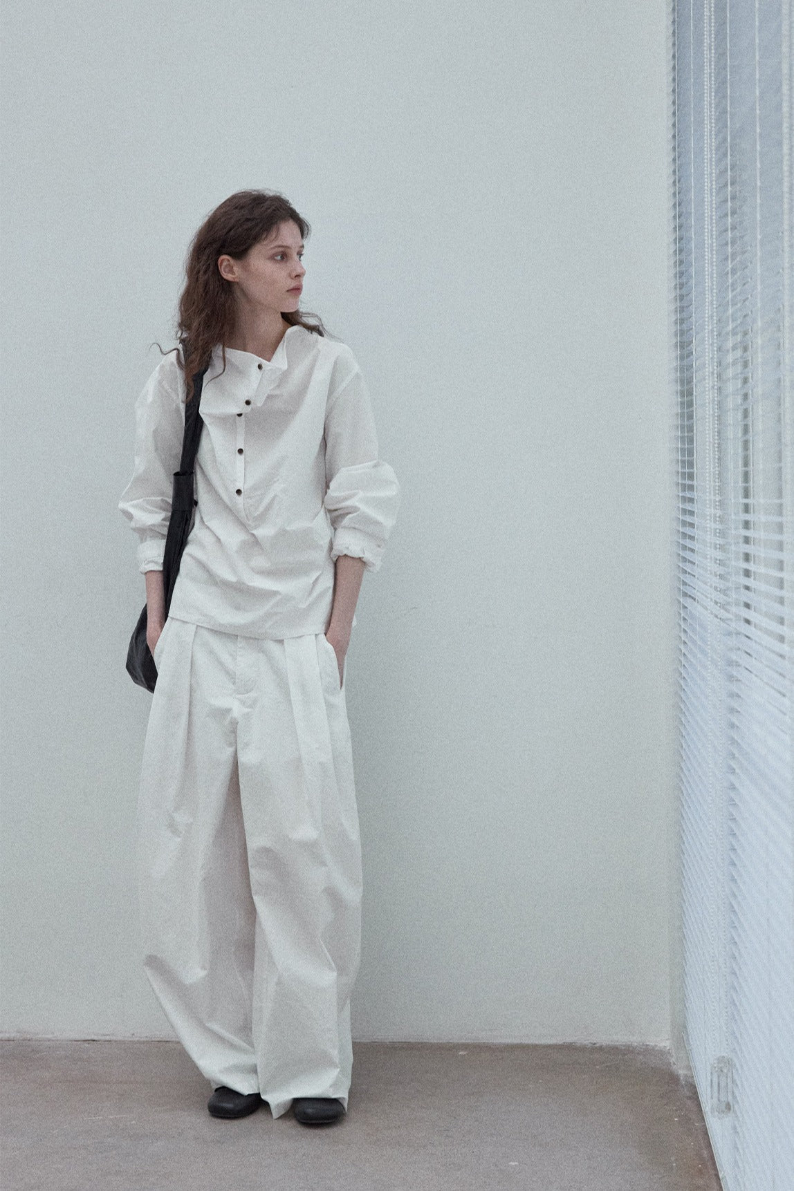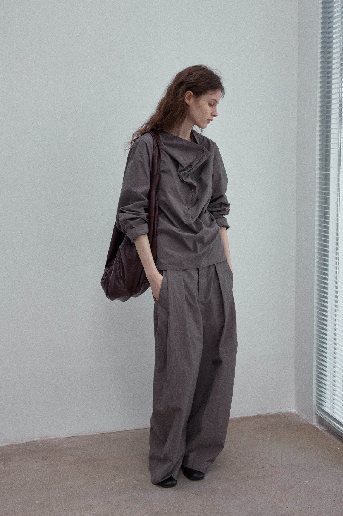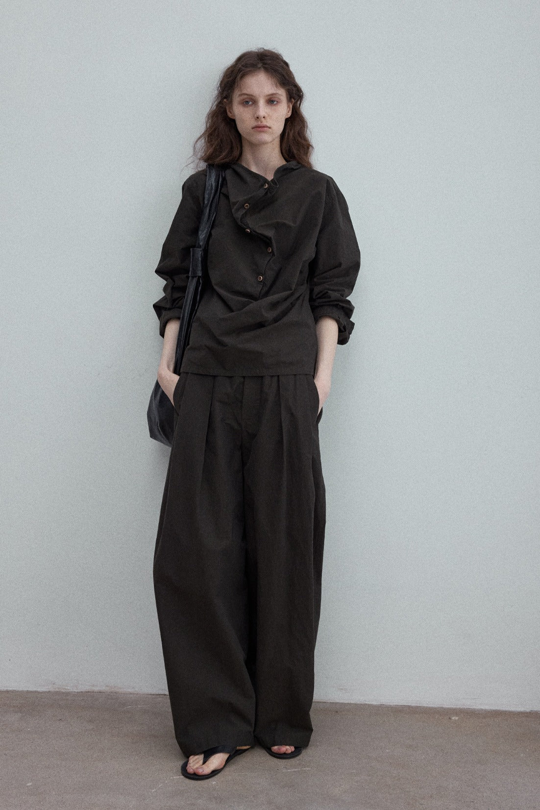 Cotton blend paper-like texture cocoon silhouette trench coat