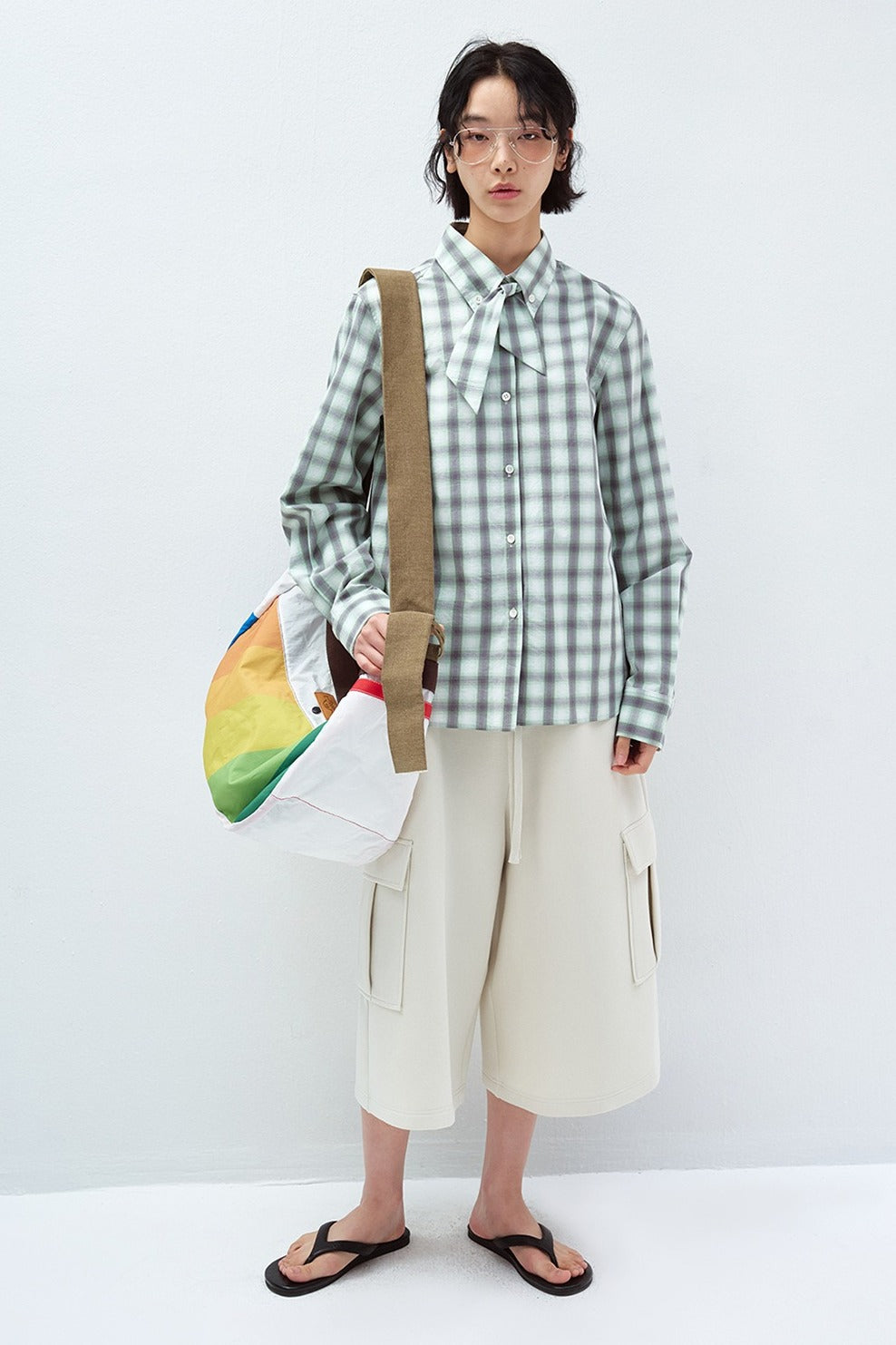 100% cotton plaid neck tie shirt | 2 color